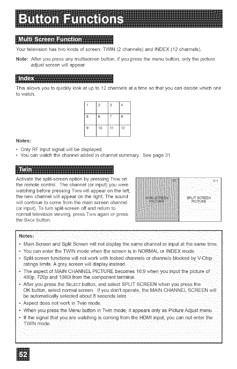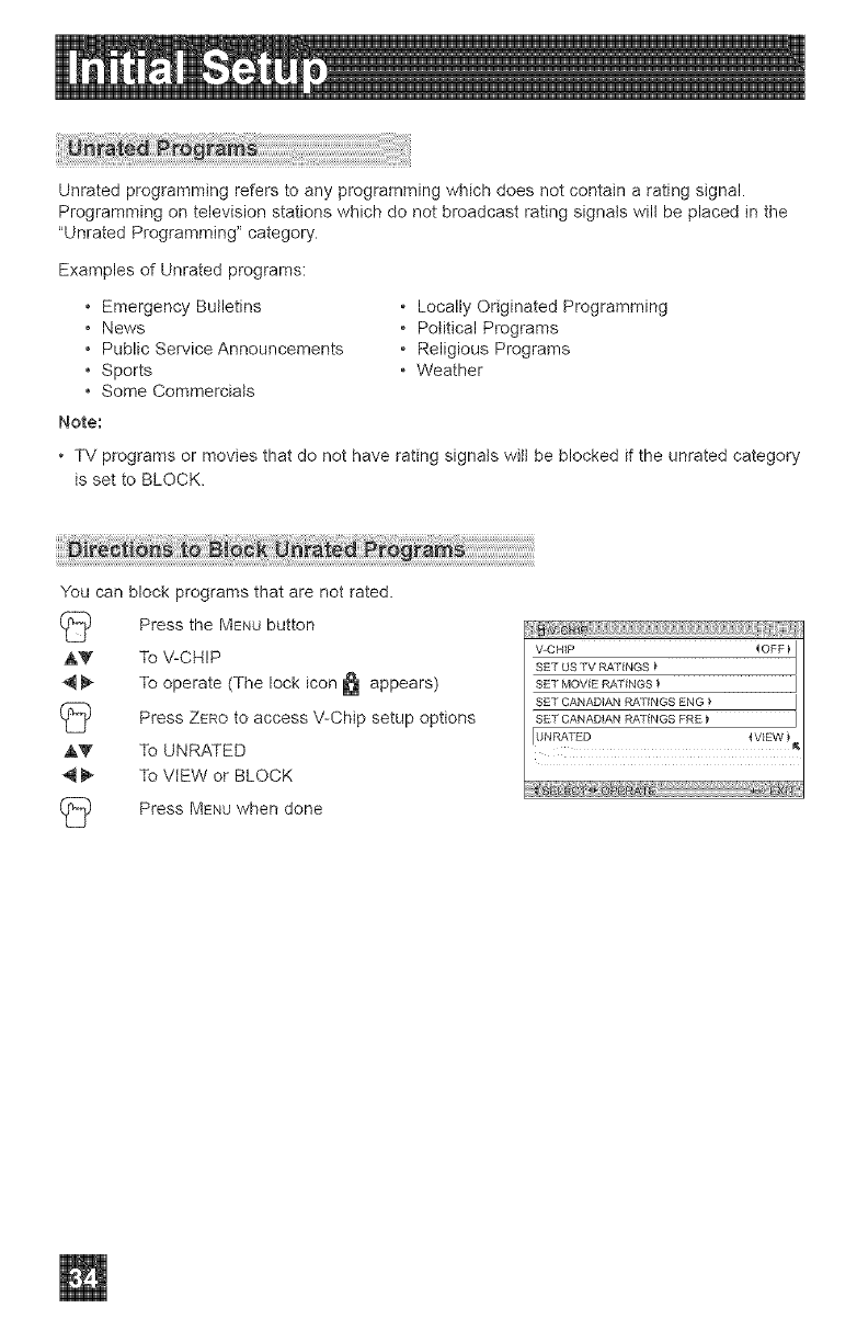 Reception Range VHF 2 to 13, UHF 14 to 69 Sub, M_d, Super, Hyper and Ultra bands