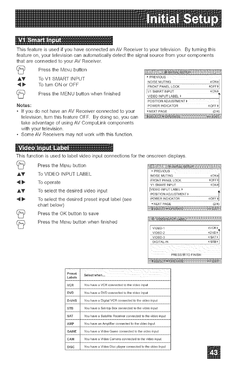 S-Video Input Jacks Y: 1Vp-p positive, 75 ohms (negative sync provided)