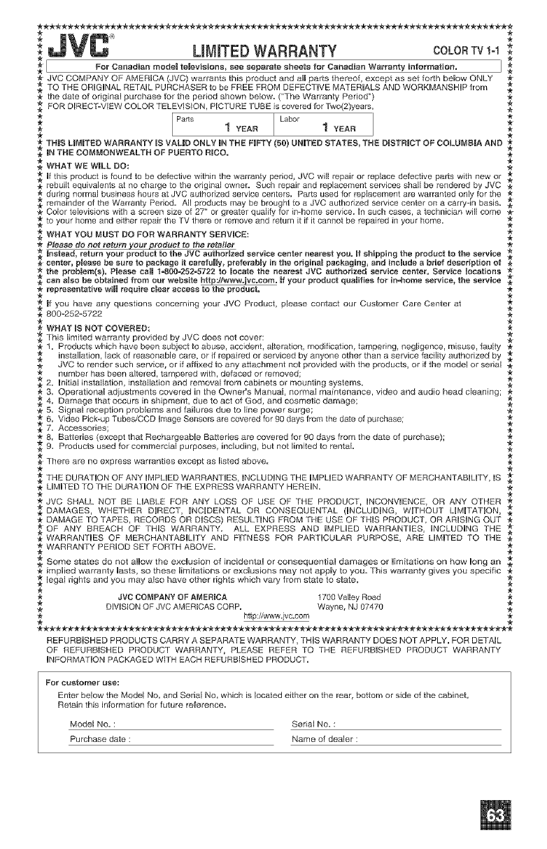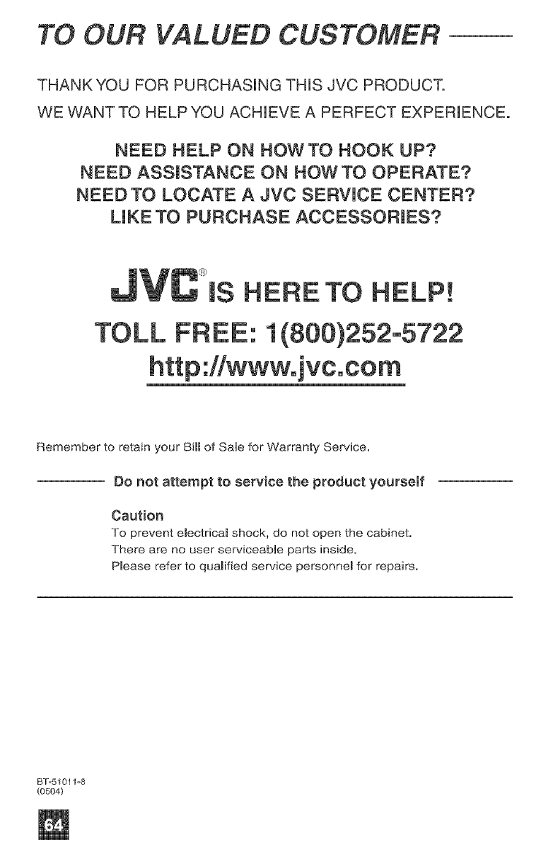 * _f you have any questions concerning your JVC Product, please contact our Customer Care Center at