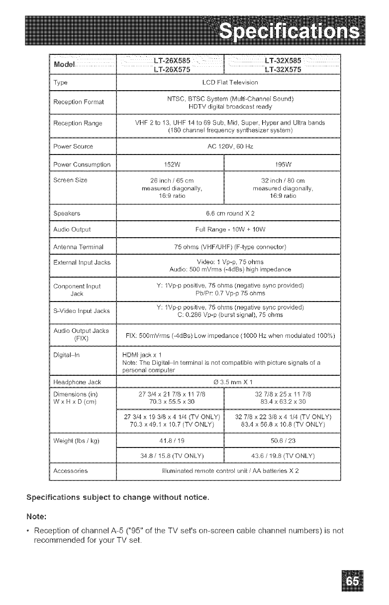 User Manual: JVC LT-26X575 LT-26X575 JVC TV LCD - Manuals and Guides View the owners manual for your JVC TV LCD #LT26X575. Home:Electronics Parts:Jvc Parts:Jvc TV LCD Manual