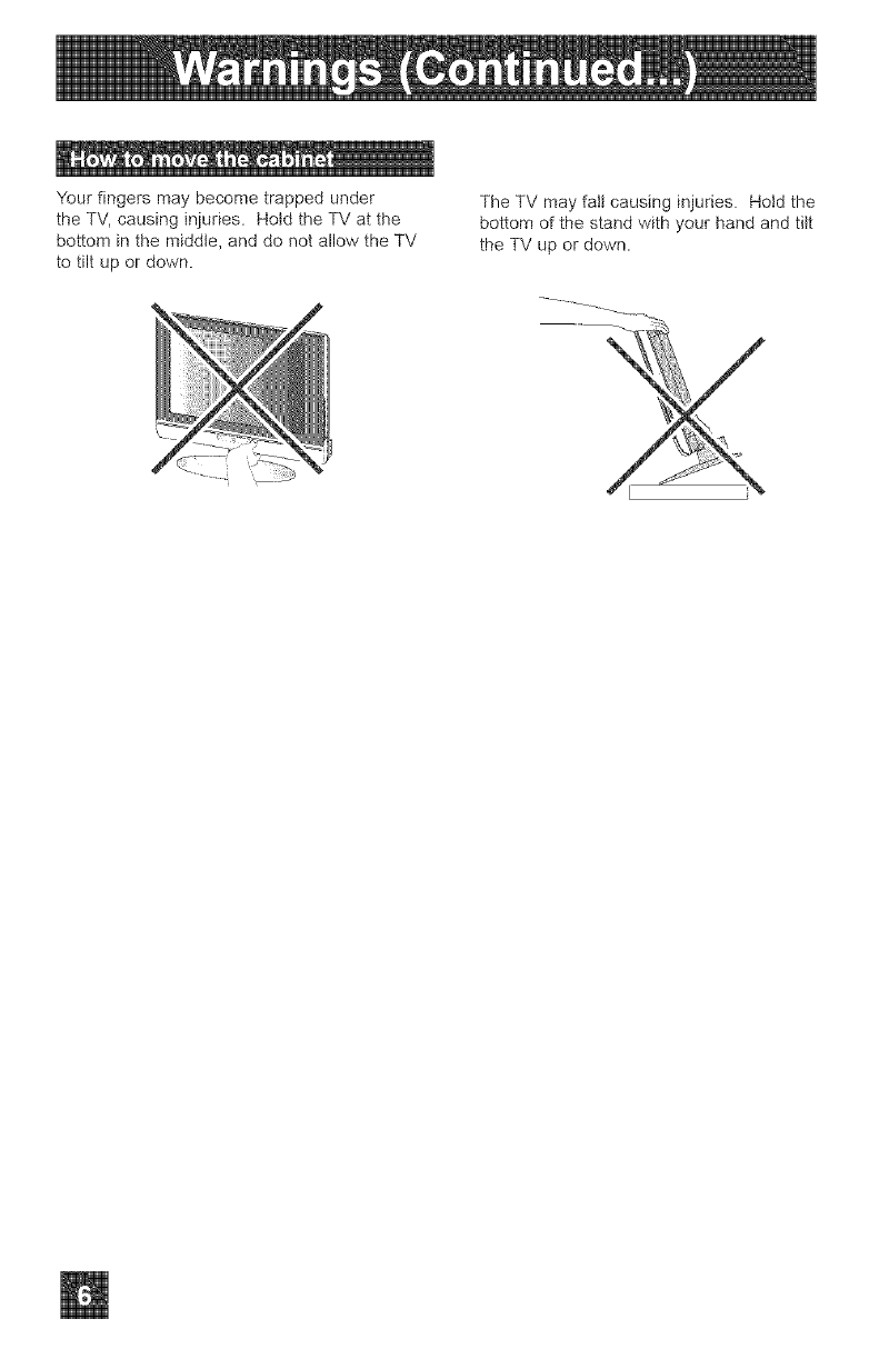 -- Do not tilt the TV towards the left or right, or towards the back.