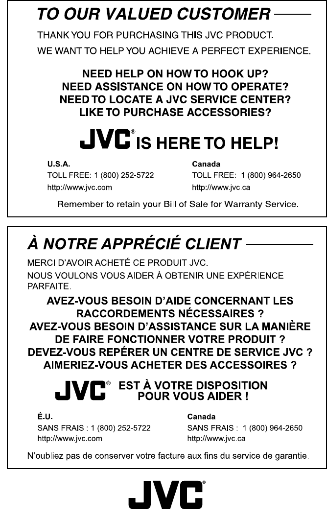 Changes or modifications not approved by JVC could void the warranty.