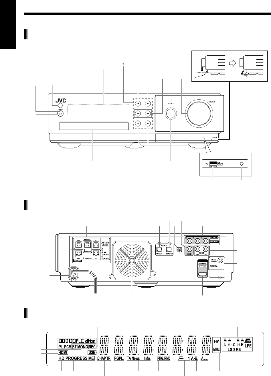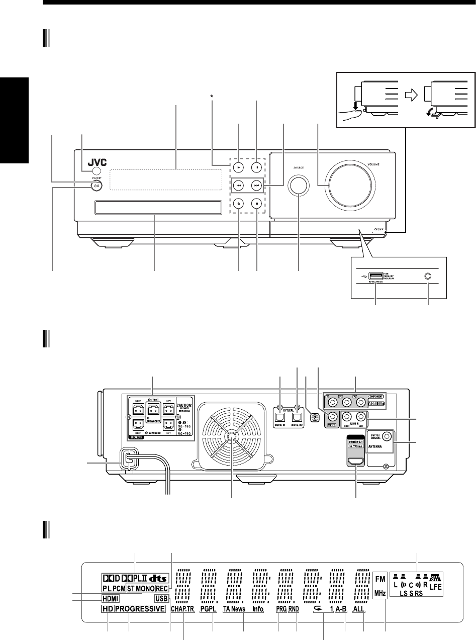 • Quando l’unità è in standby, la spia STANDBY si accende in rosso.