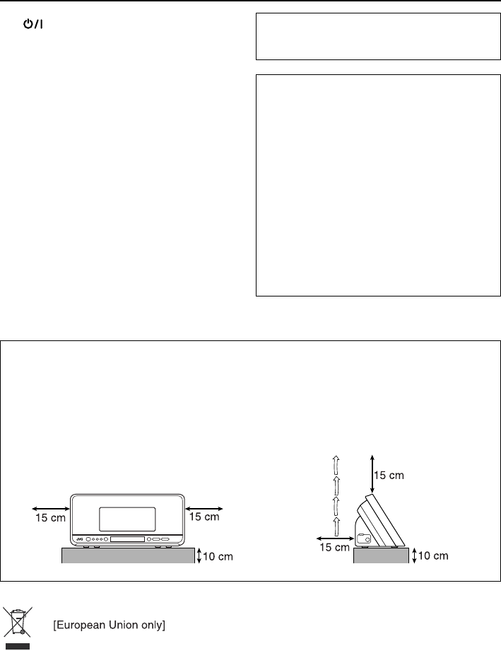 • Should any metallic object or liquid fall into the unit, unplug the AC power cord and consult your