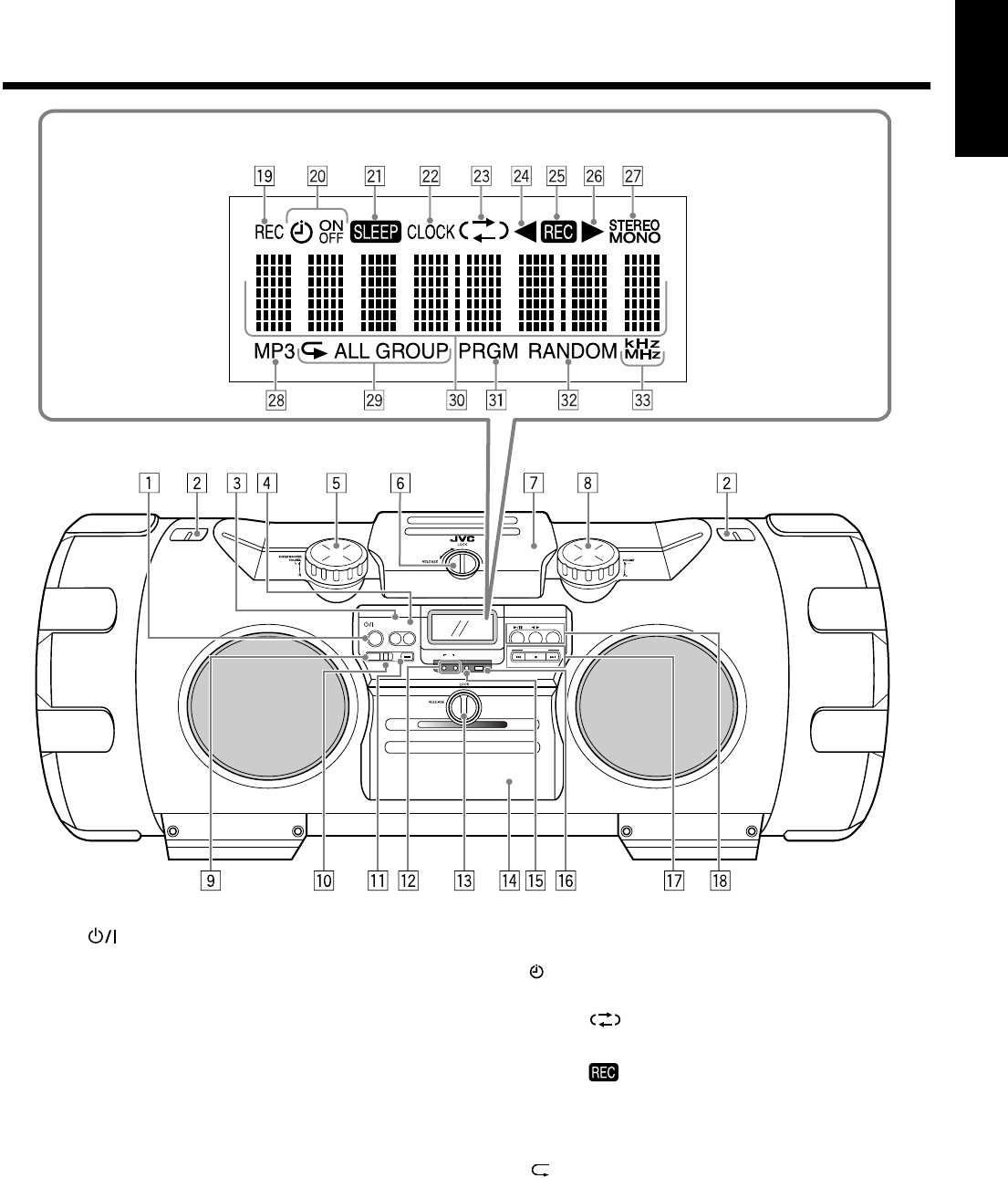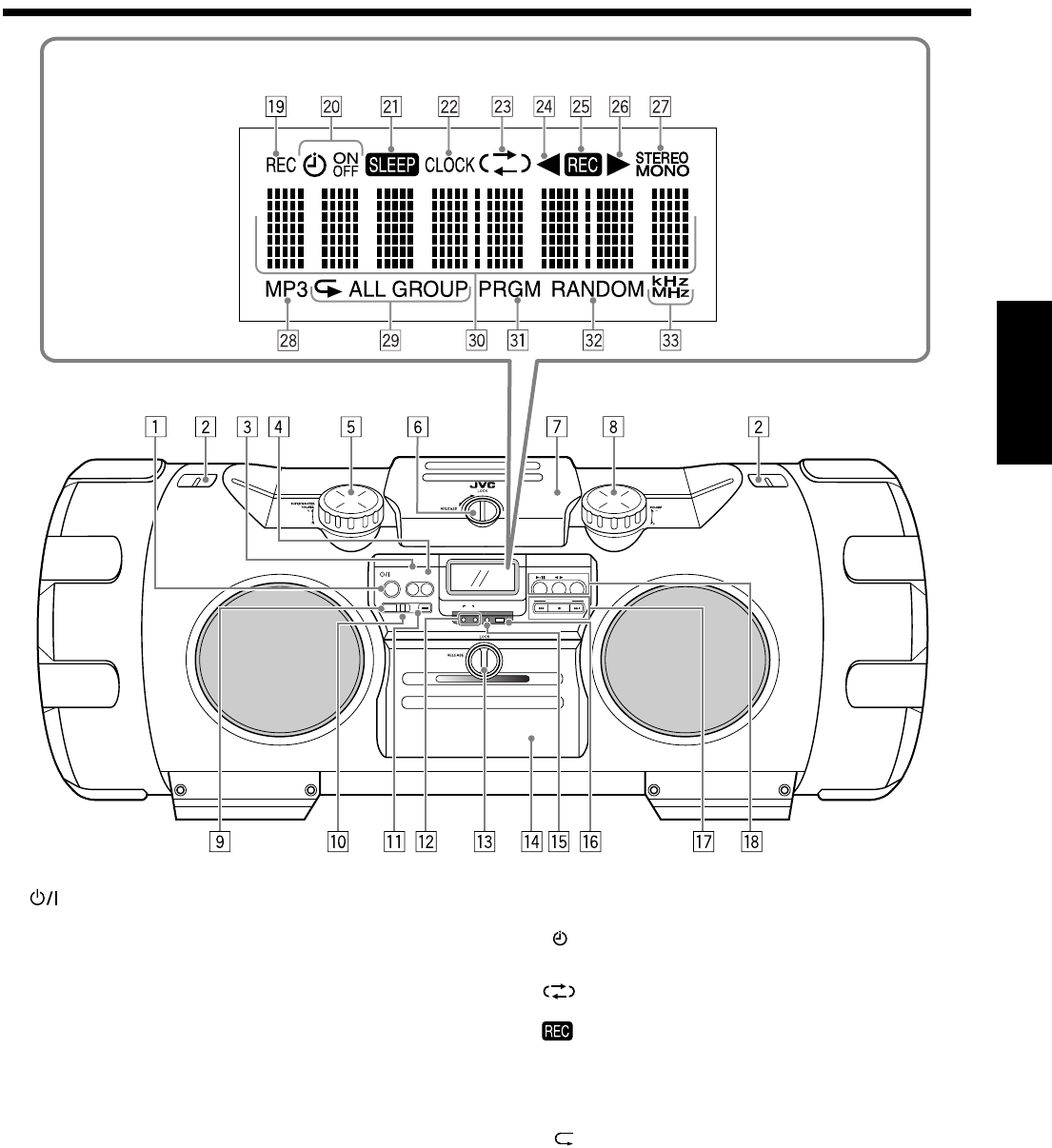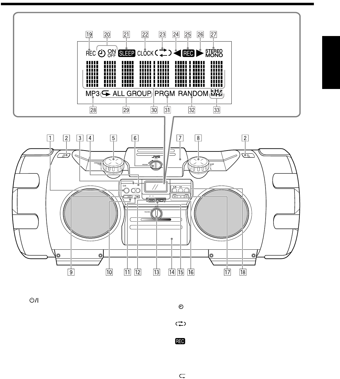• Když je přístroj zapnutý, indikátor STANDBY nesvítí.