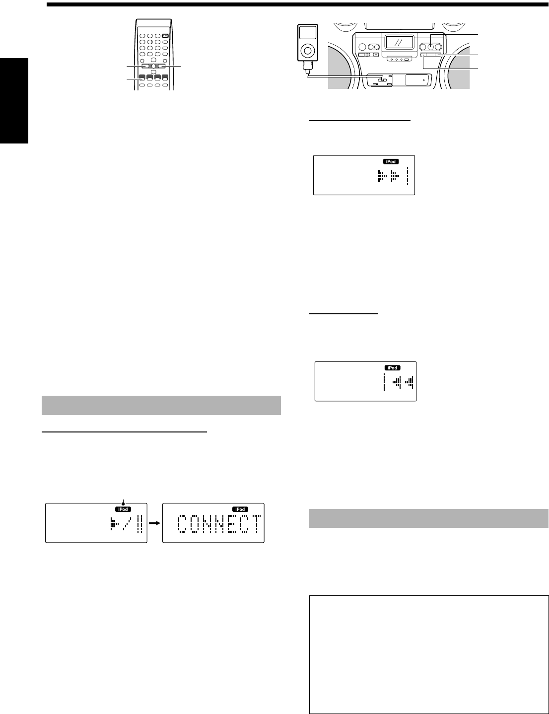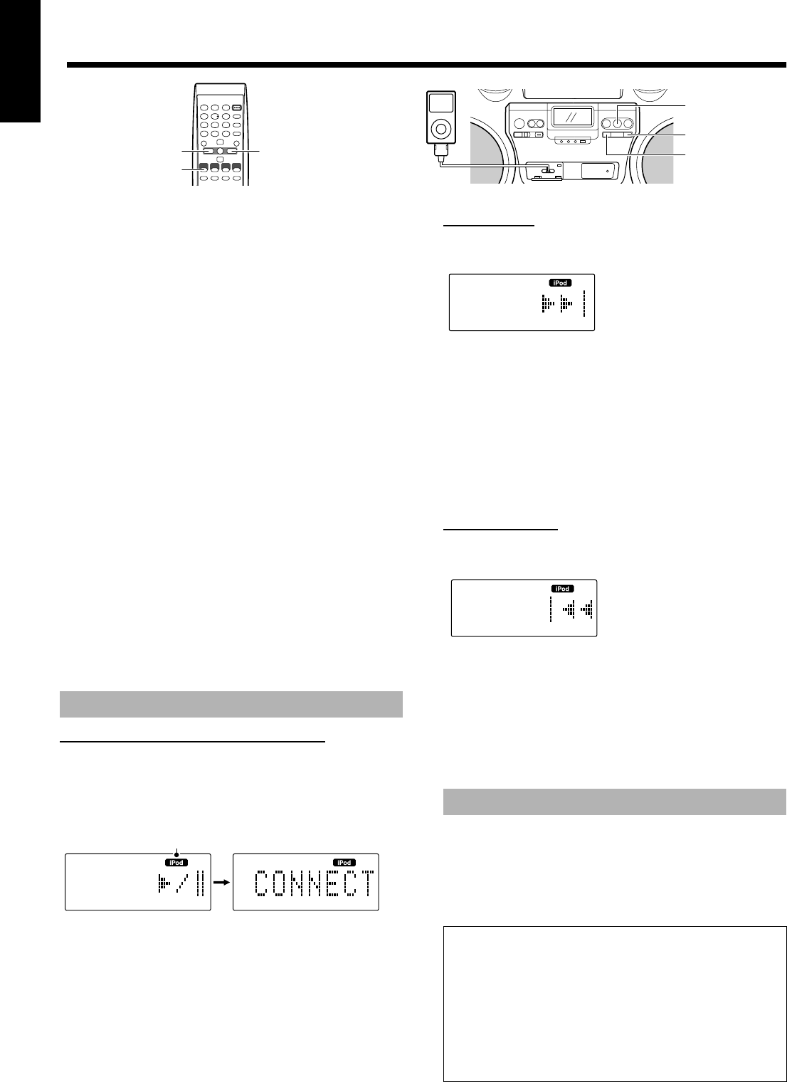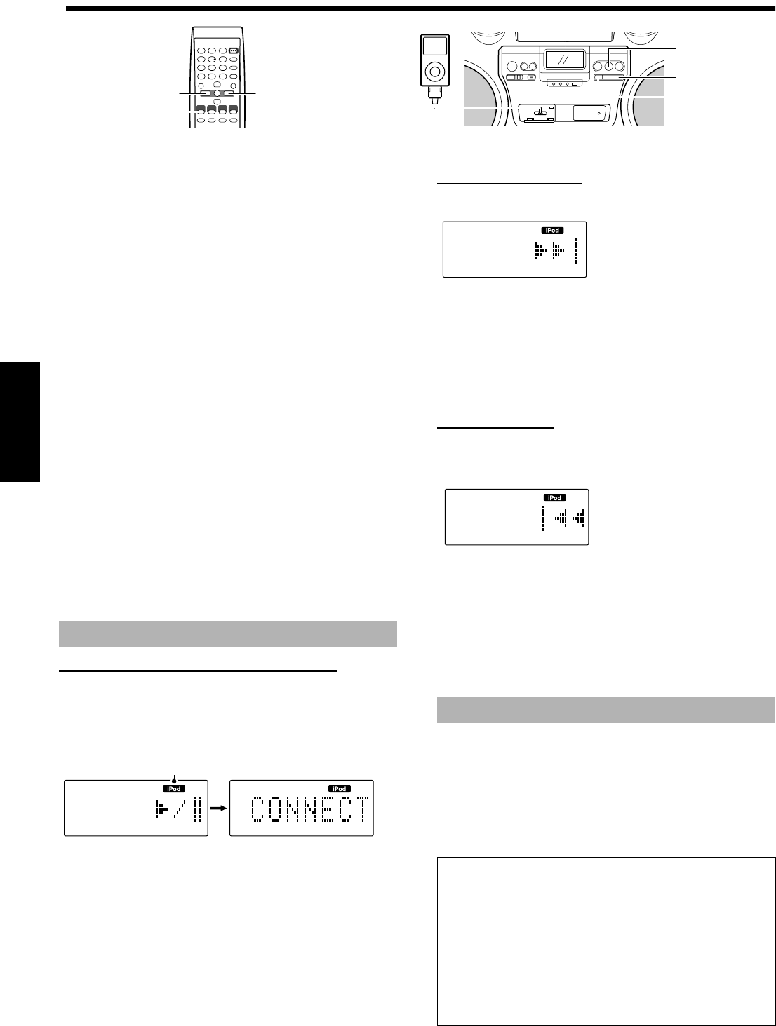 •Проигрыватель iPod не включается.•Ненадежное подключение.•Проверьте надежность подключения.