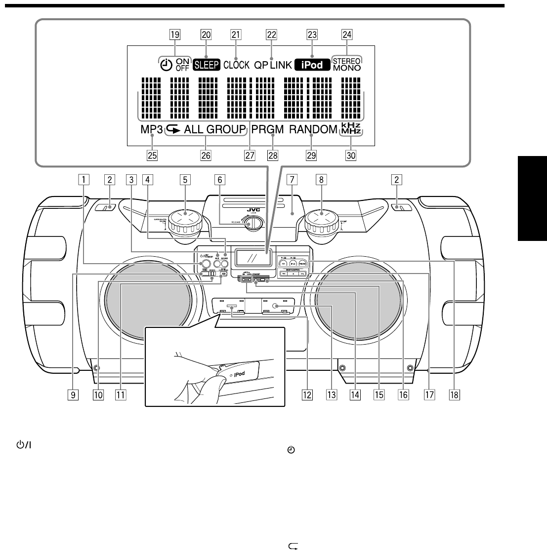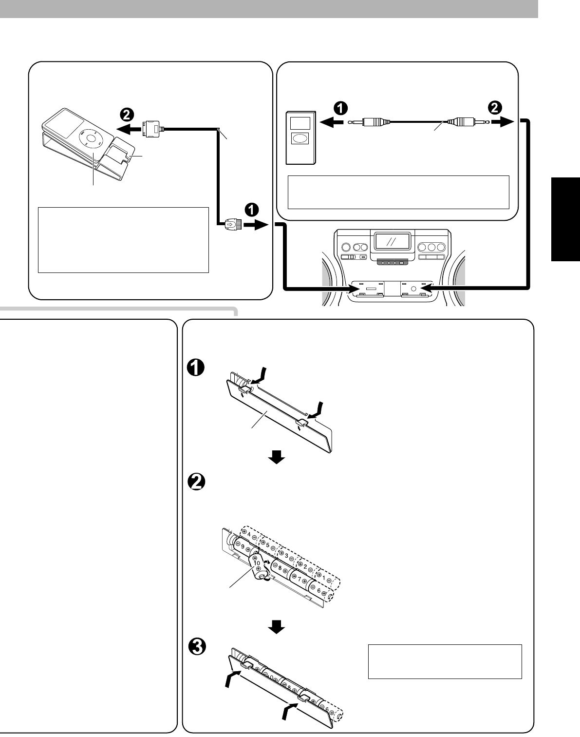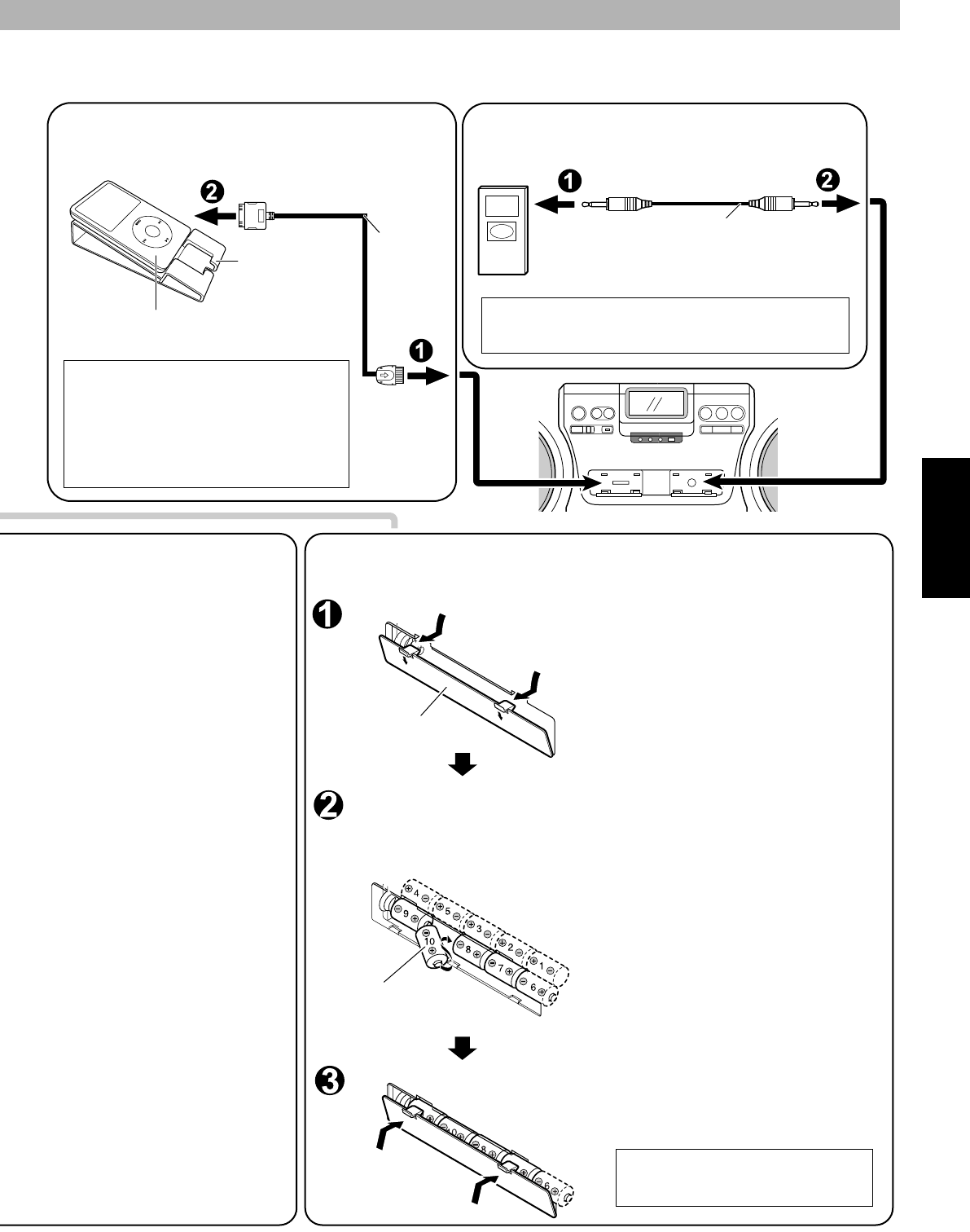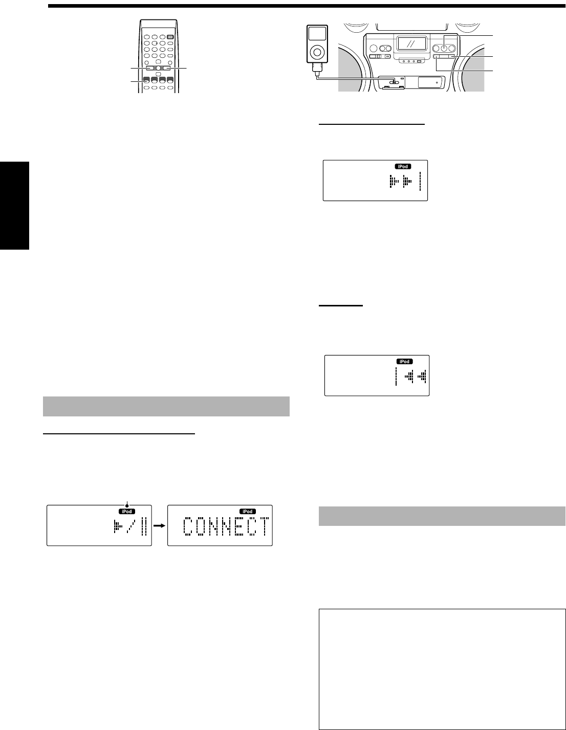 •Проигрыватель iPod не включается.•Ненадежное подключение.•Проверьте надежность подключения.