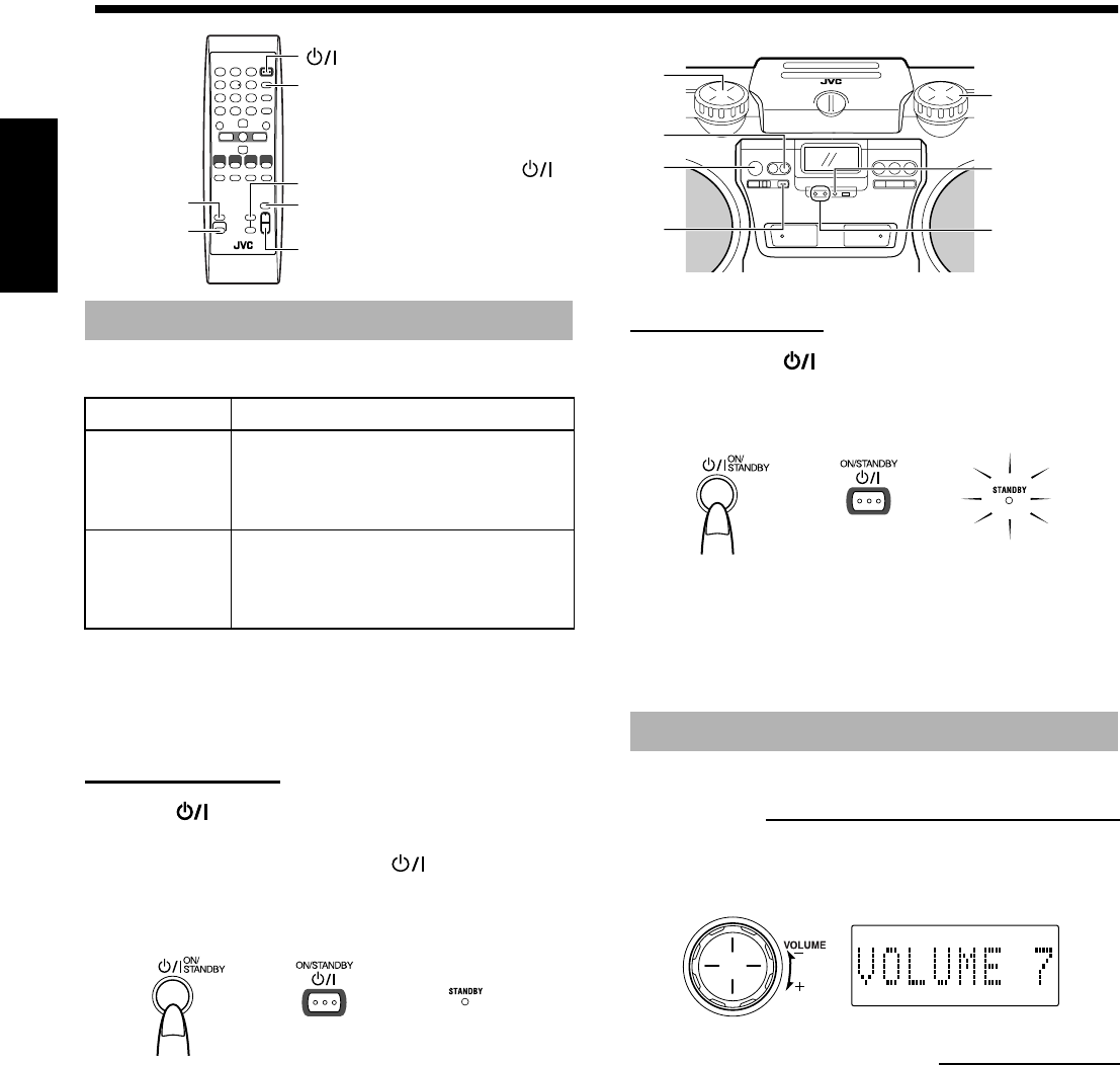 • Gdy urządzenie jest wyłączone, dioda STANDBY wyłącza się.