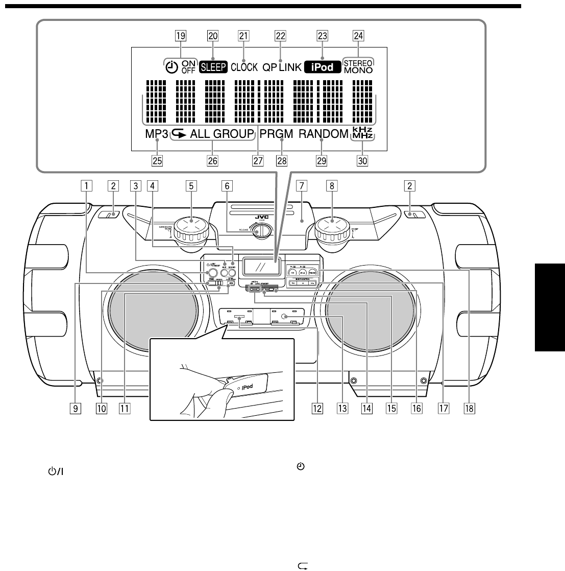 • Když je přístroj zapnutý, indikátor STANDBY nesvítí.