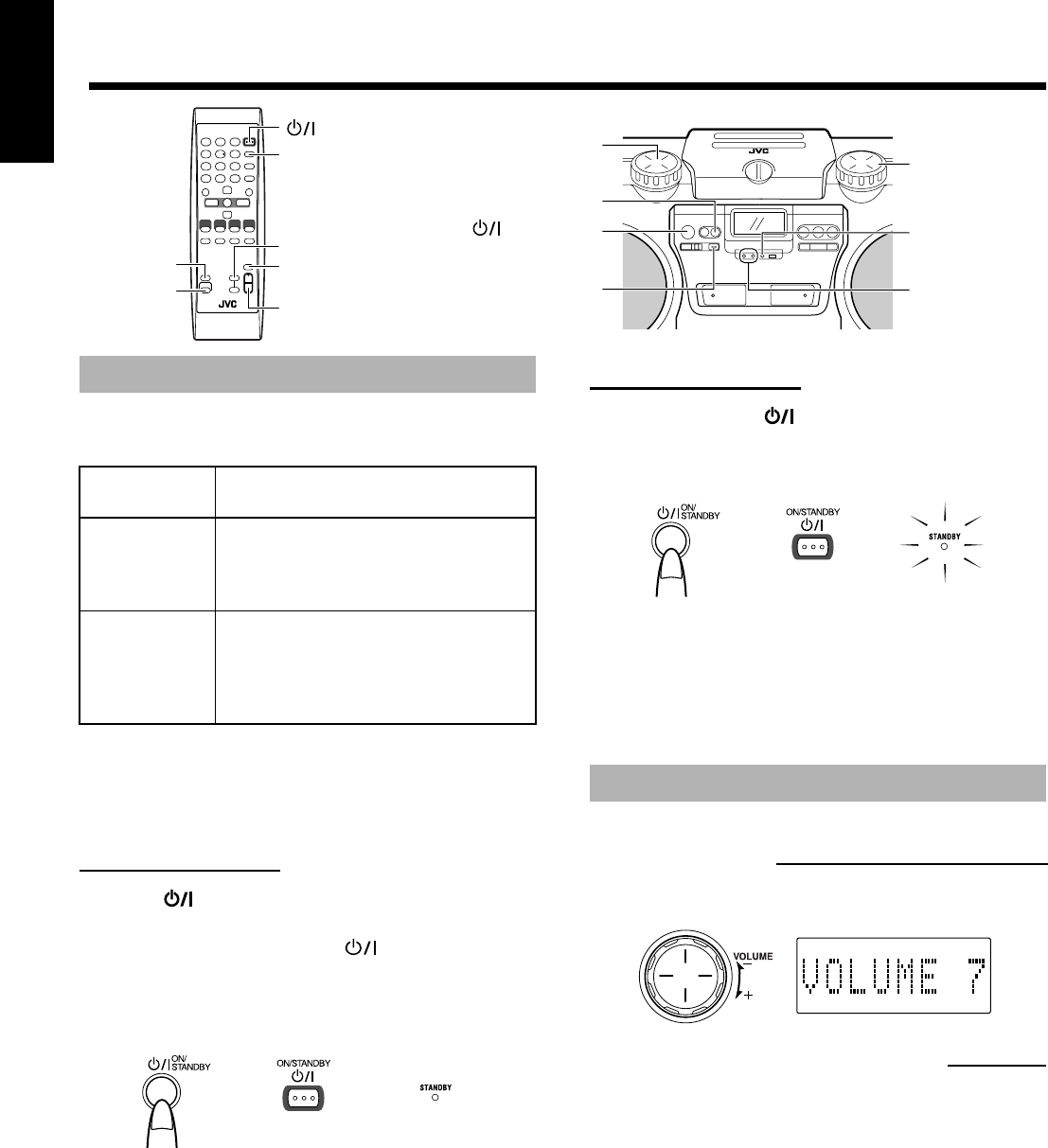 • Amikor a készülék be van kapcsolva, a STANDBY jelzőfény kialszik.