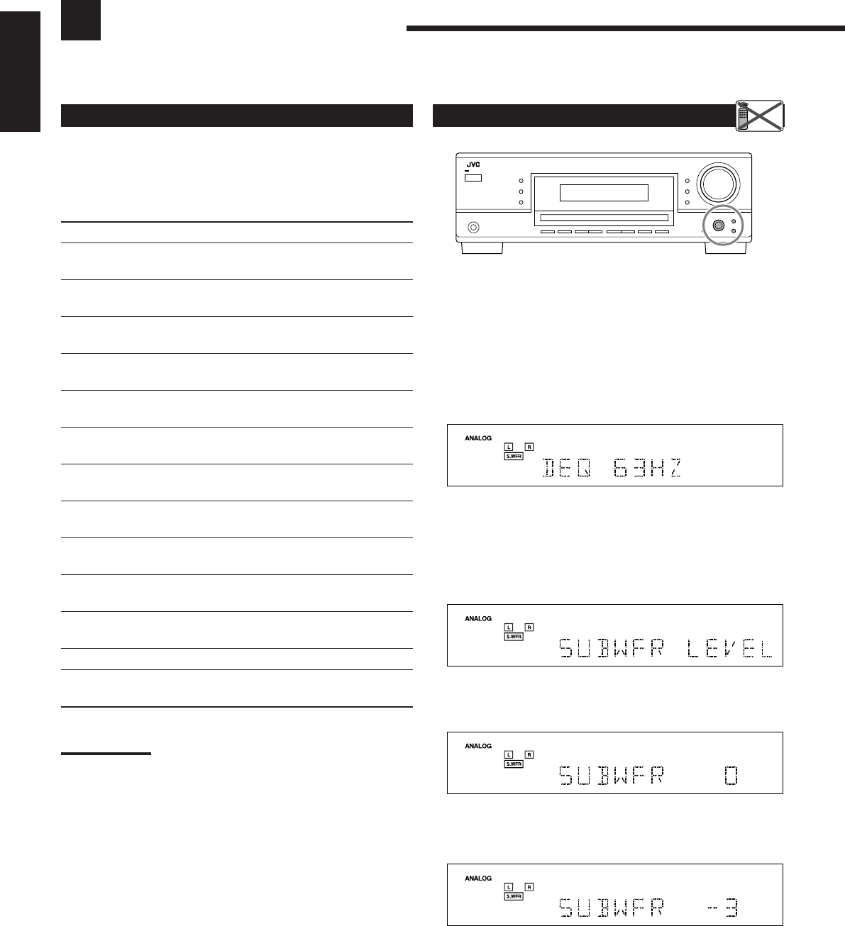 ON/OFF toets terwijl “SUBWOOFER”