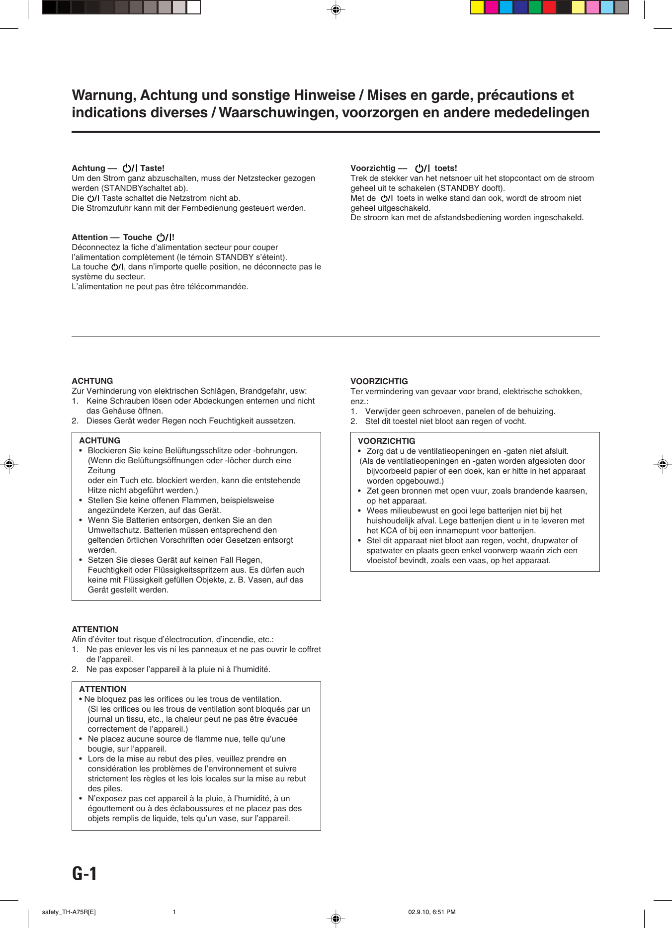 User Manual: JVC TH-A75R TH-A75R German, French, Dutch,