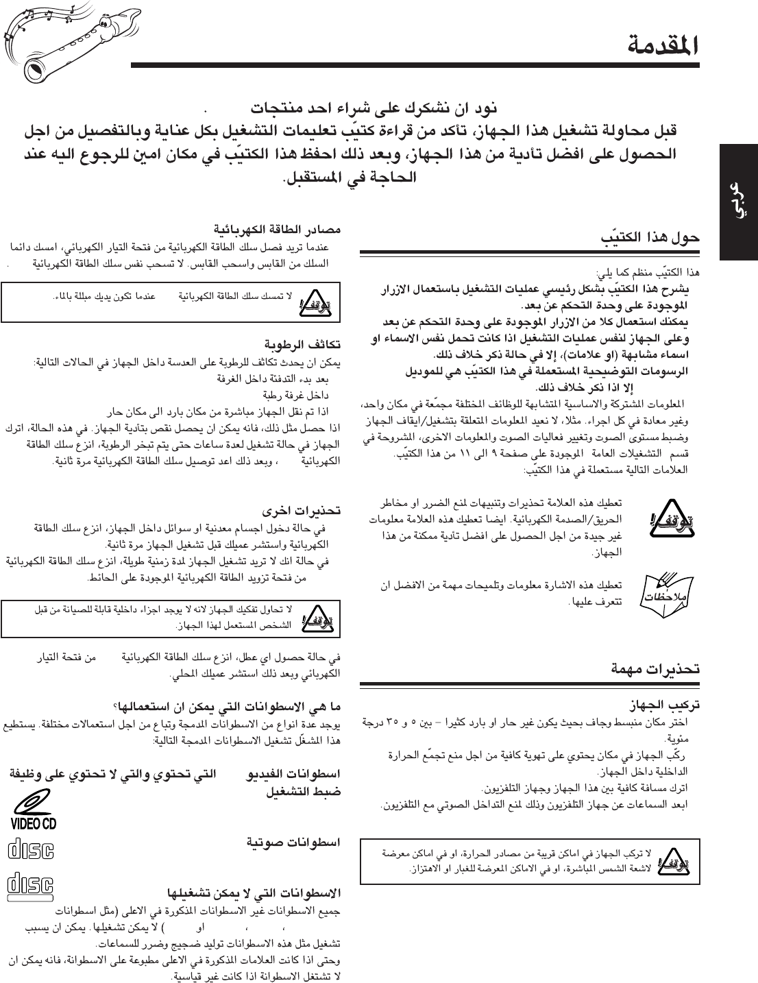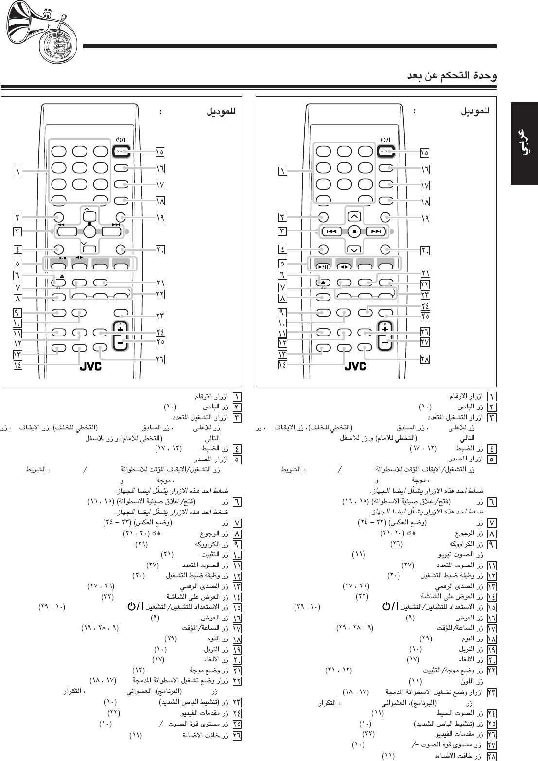 User Manual: JVC UX-J66VUX UX-J66VUX English, Arabic,