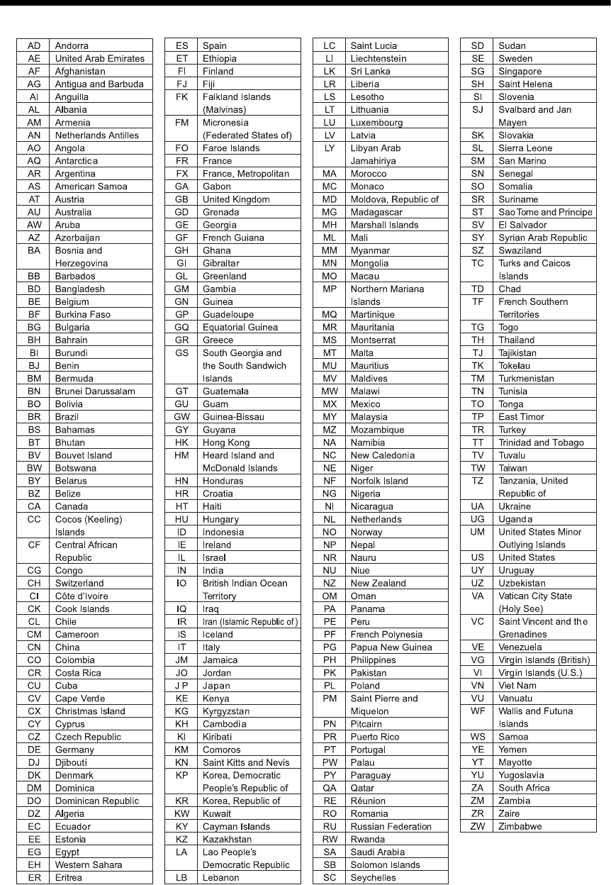 - Country/Area Codes
