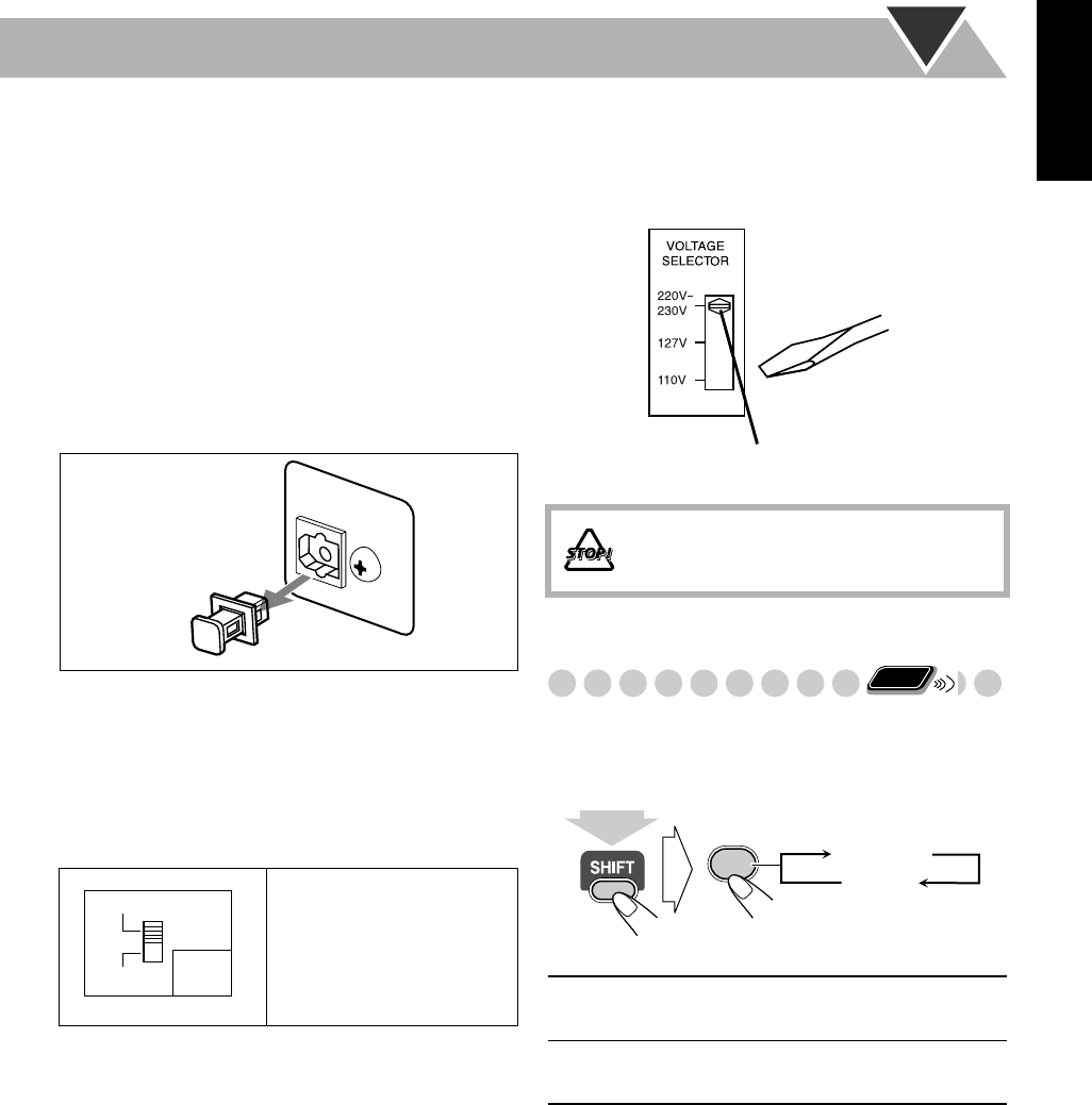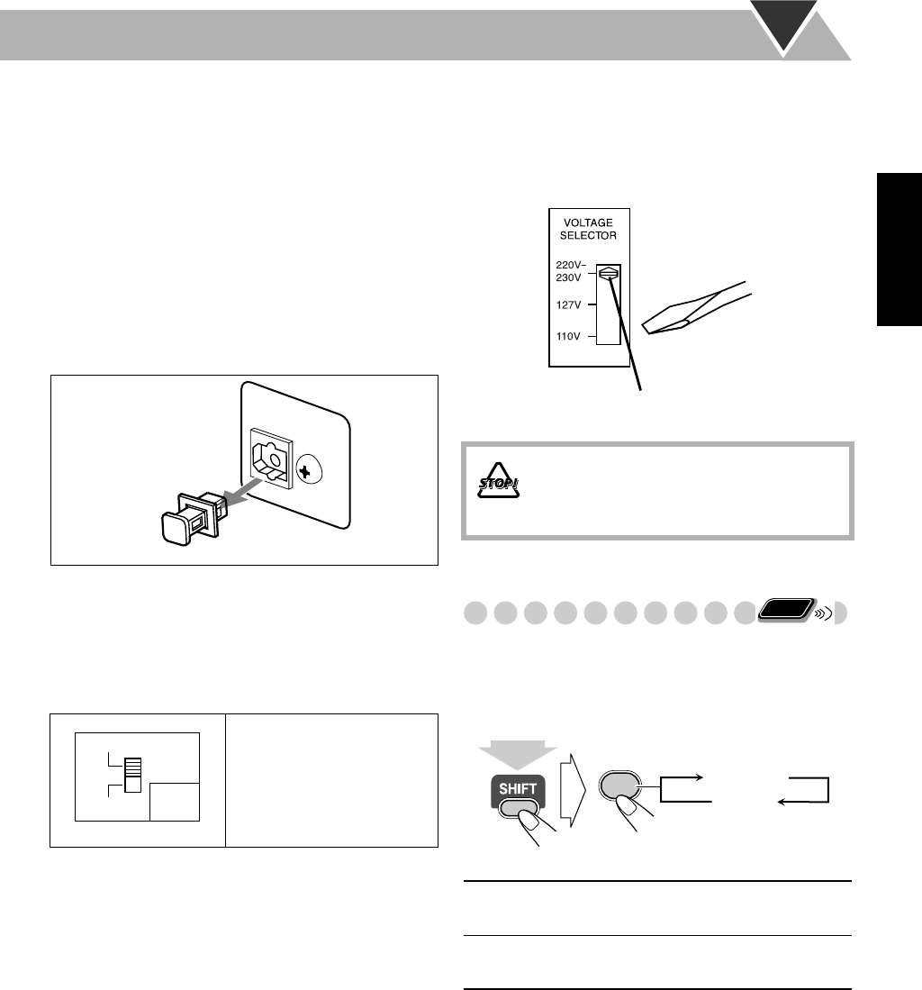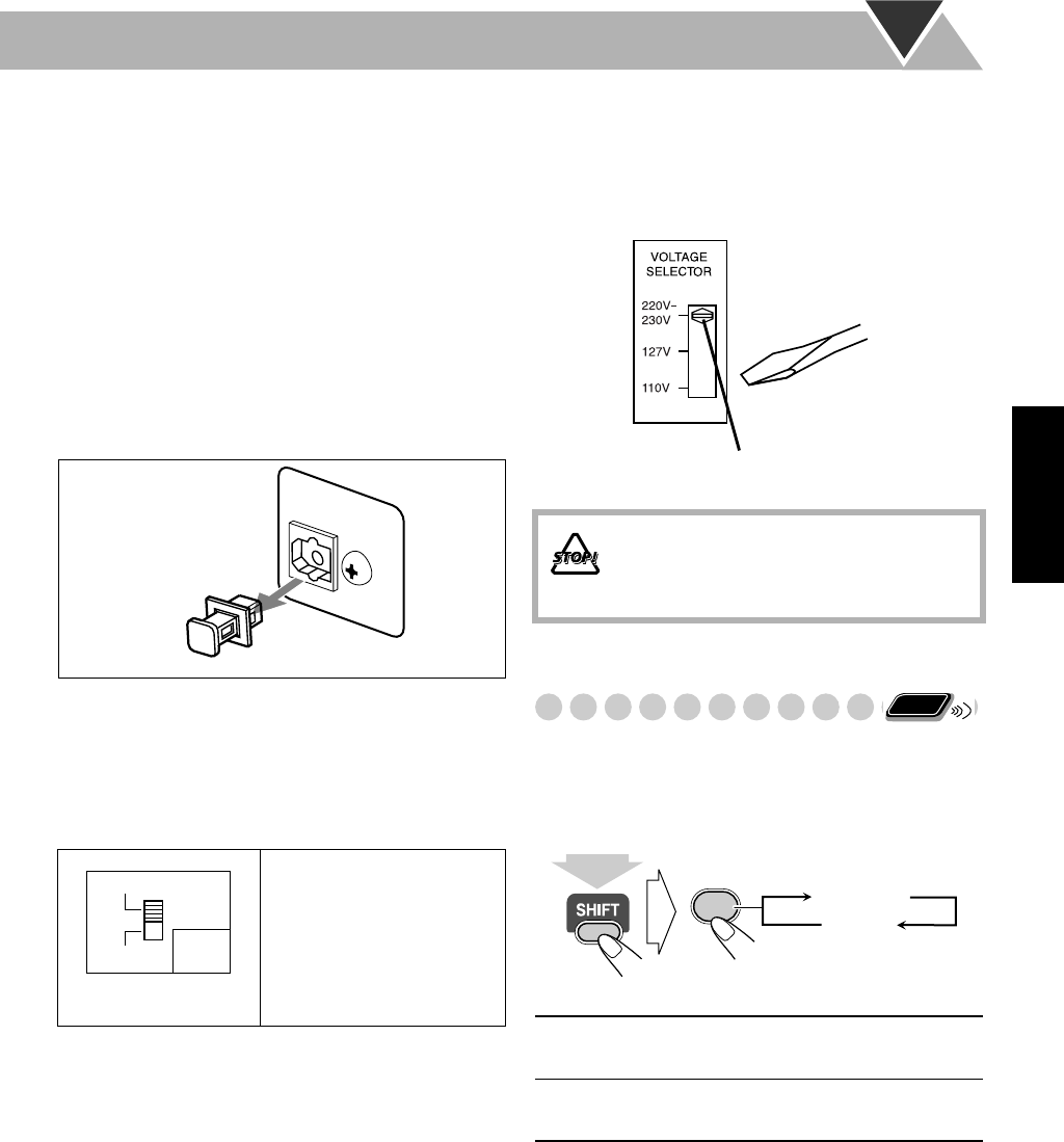 ANTES DE ENCHUFAR EL EQUIPO, compruebe si la tensión de la línea de la red (CA) corresponde con la posición del selector de