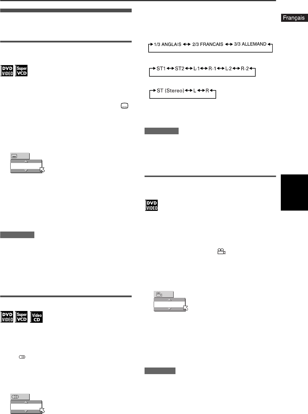 pistes audio sur les disques DVD VIDEO, CD Audio, etc.