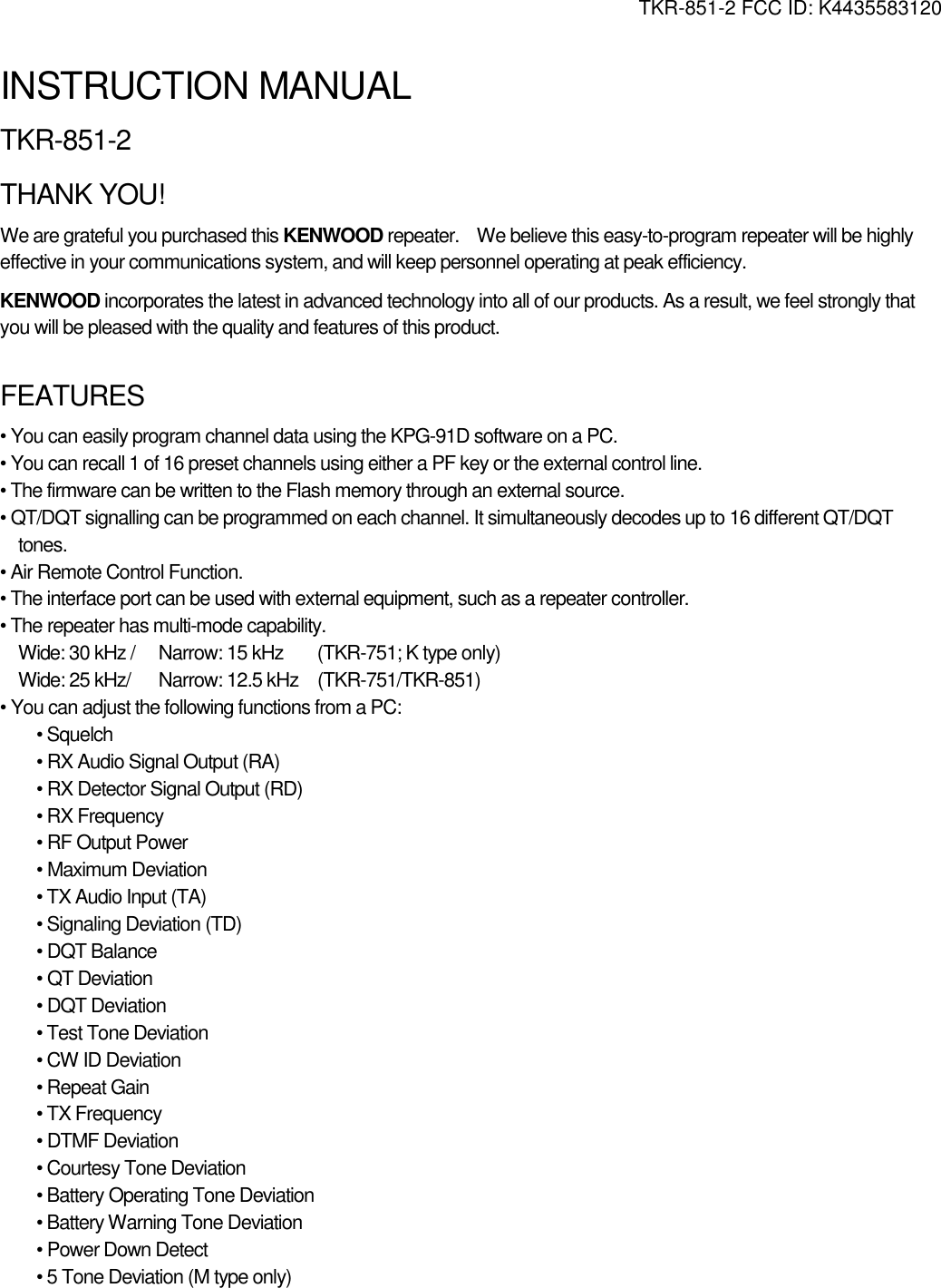 JVC KENWOOD Corporation UHF FM Transceiver INSTALLATION