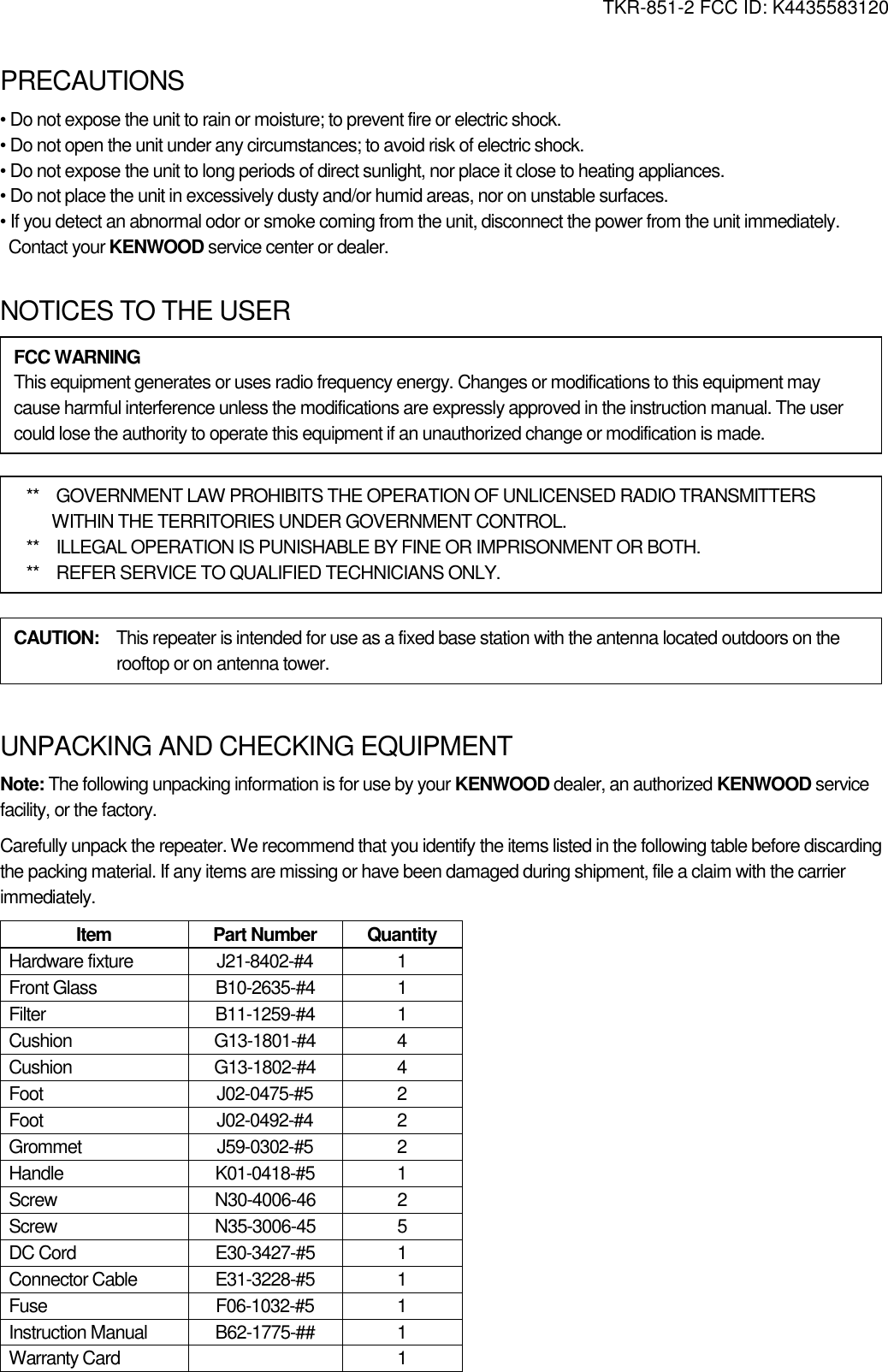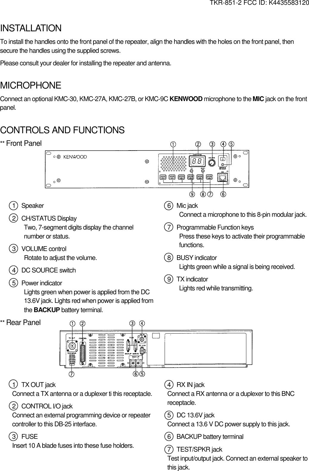 JVCKENWOOD 35583120 UHF FM Transceiver User Manual INSTALLATION