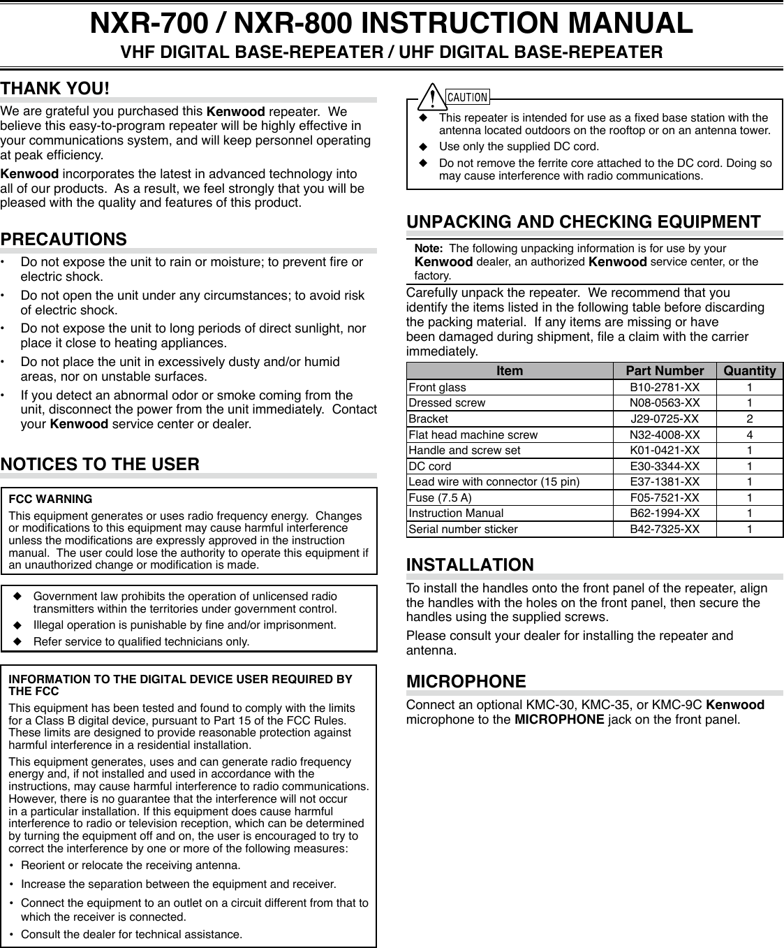 JVCKENWOOD 371404 UHF Digital base repeater User Manual