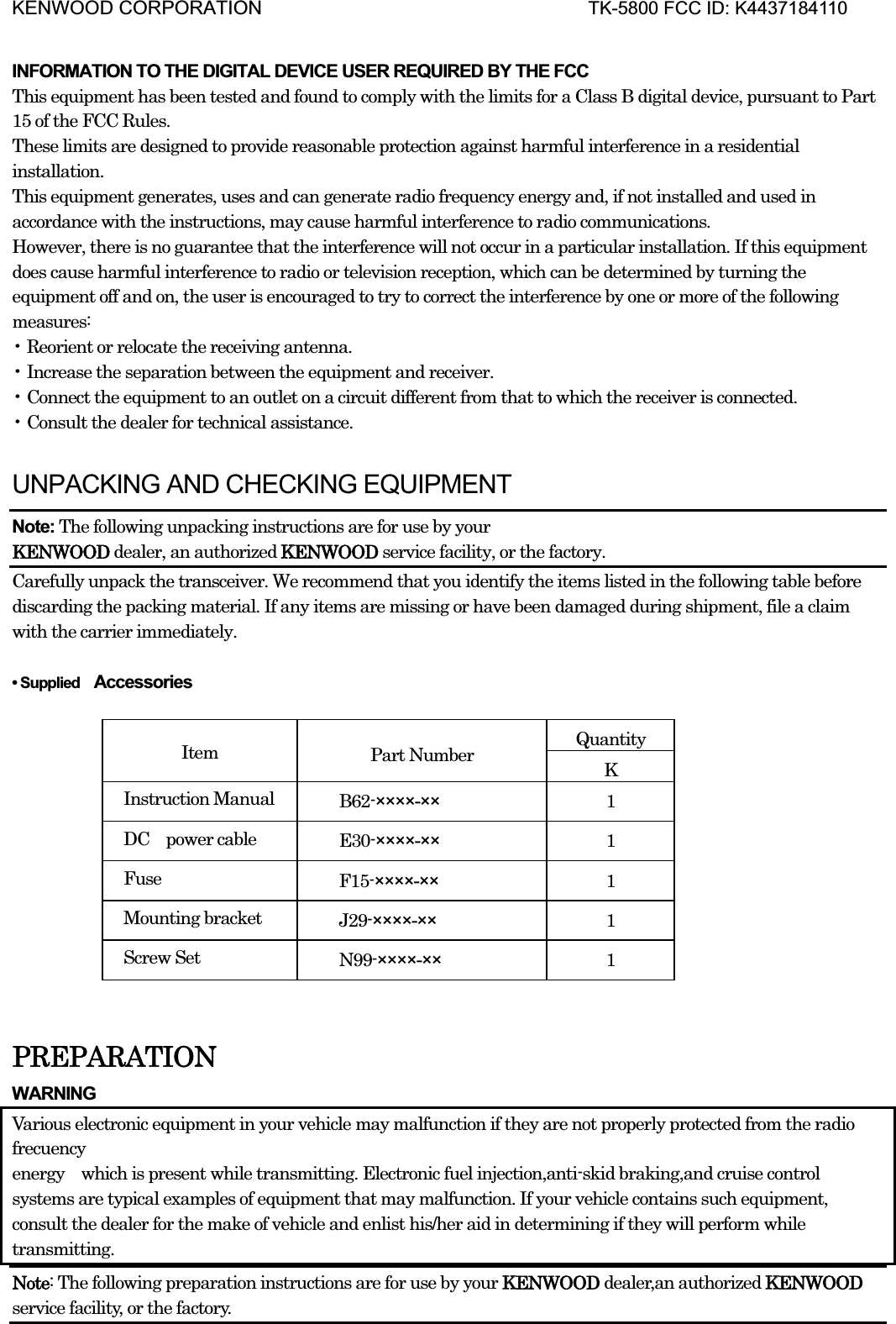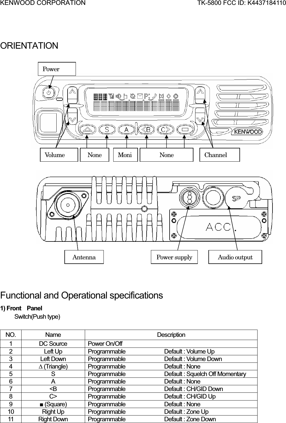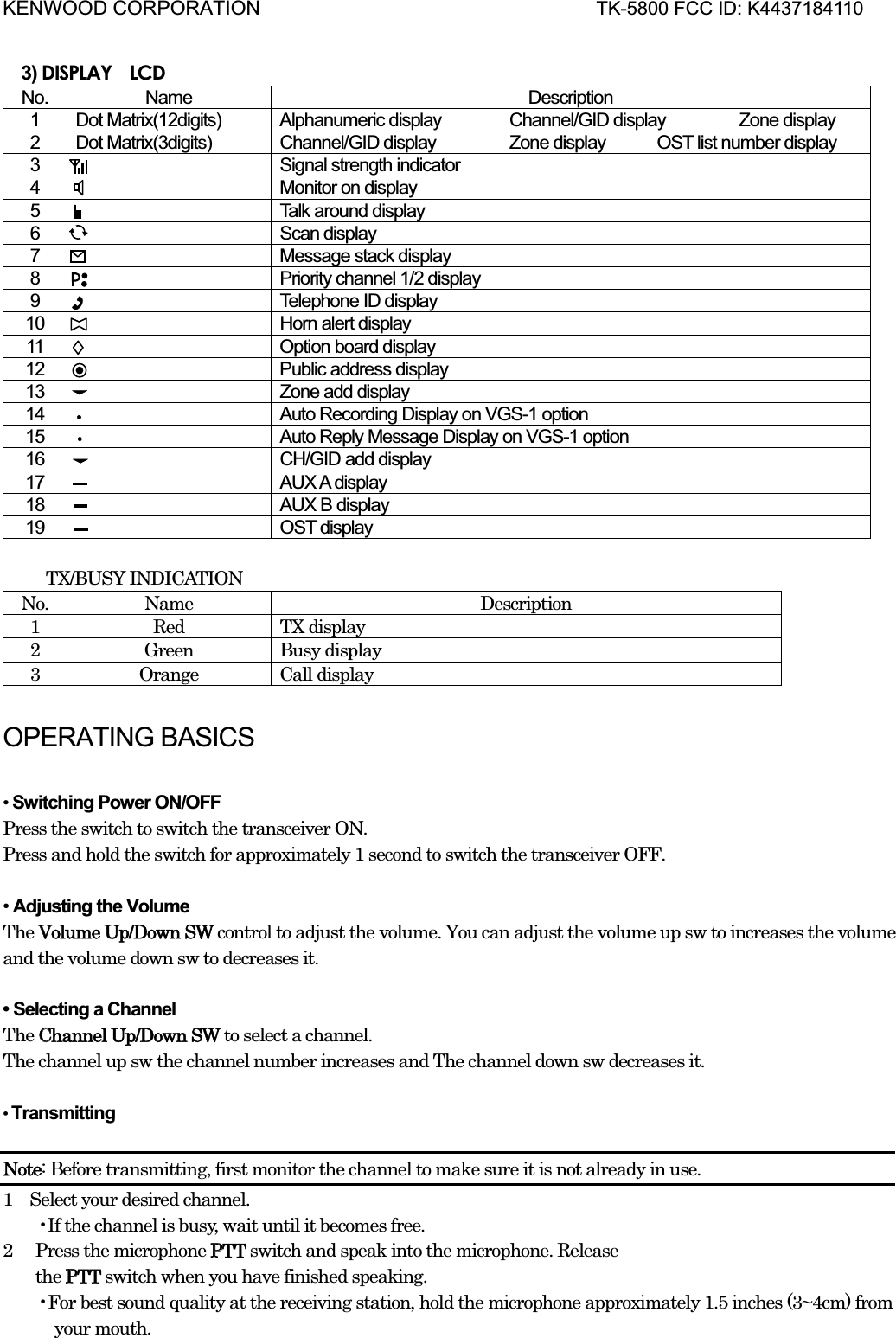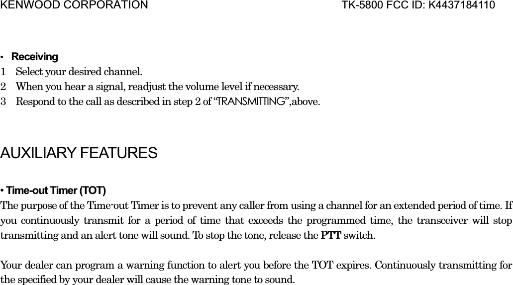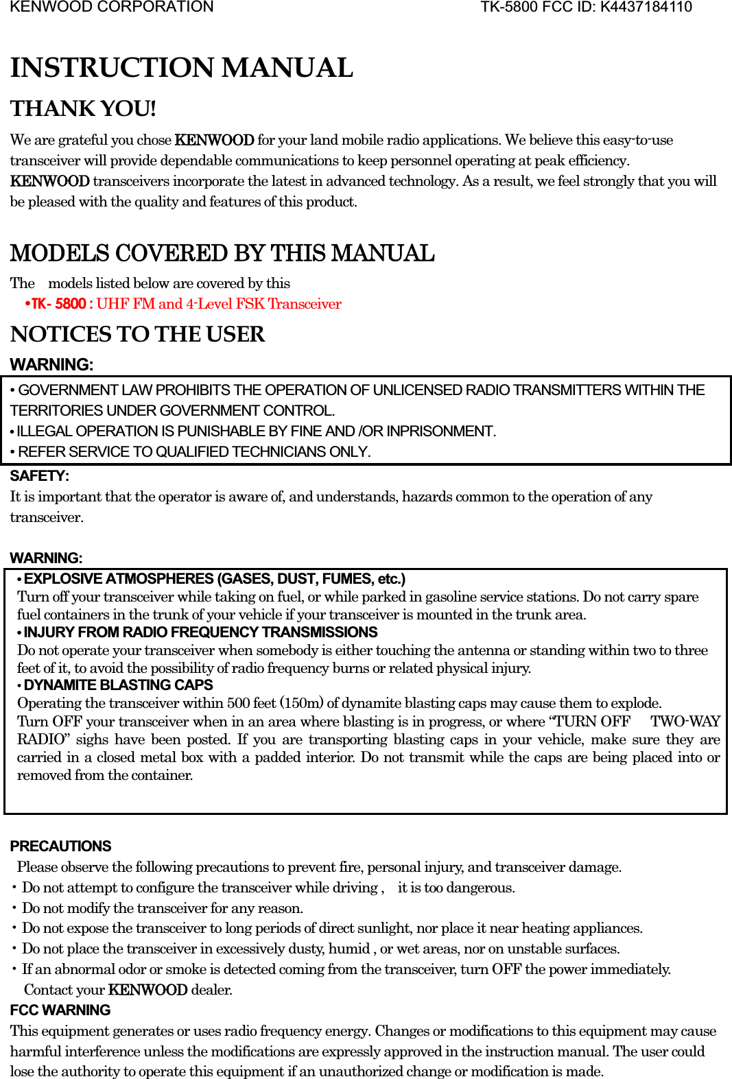 JVCKENWOOD 37184110 UHF DIGITAL TRANSCEIVER (Model :TK-5800) User Manual Manual