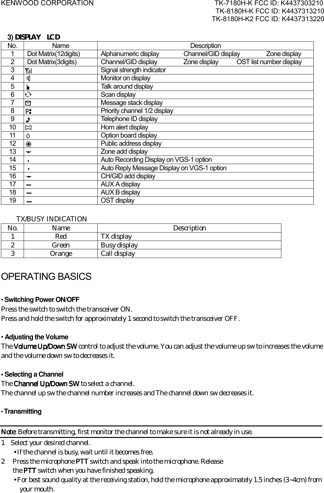 JVC KENWOOD Corporation UFH FM Transceiver PRODUCT SPECIFICATIONS