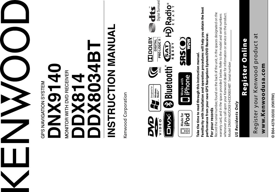 JVC KENWOOD Corporation GPS NAVIGATION SYSTEM MONITOR DVD RECEIVER 10 Instruction manual DNX9140 Rev2