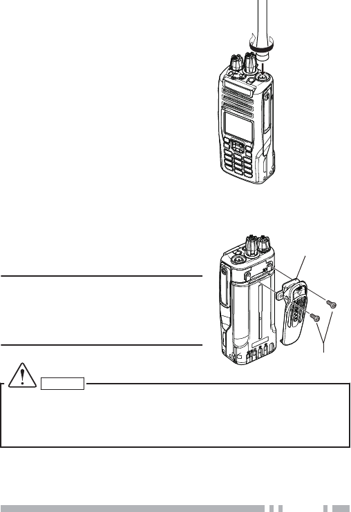 • Use only the specified antenna for this transceiver; this may be either the antenna provided with the