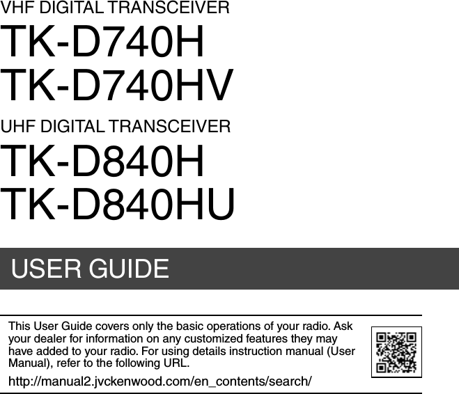 JVCKENWOOD 475701 UHF DIGITAL TRANSCEIVER User Manual