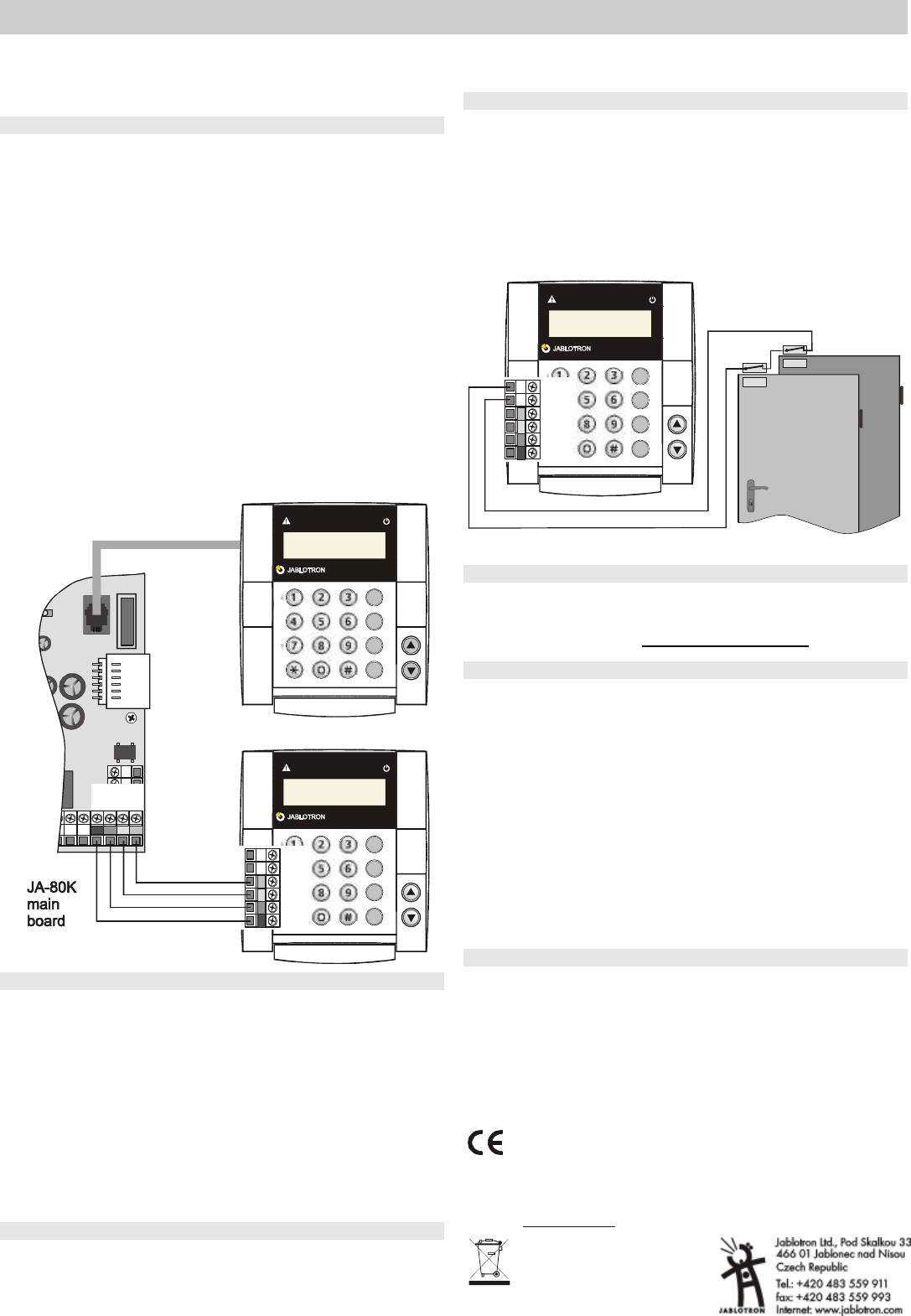 Jablotron Ltd Hard wired keypad with RFID card reader Exhibit 7 Instruction manual JA80E