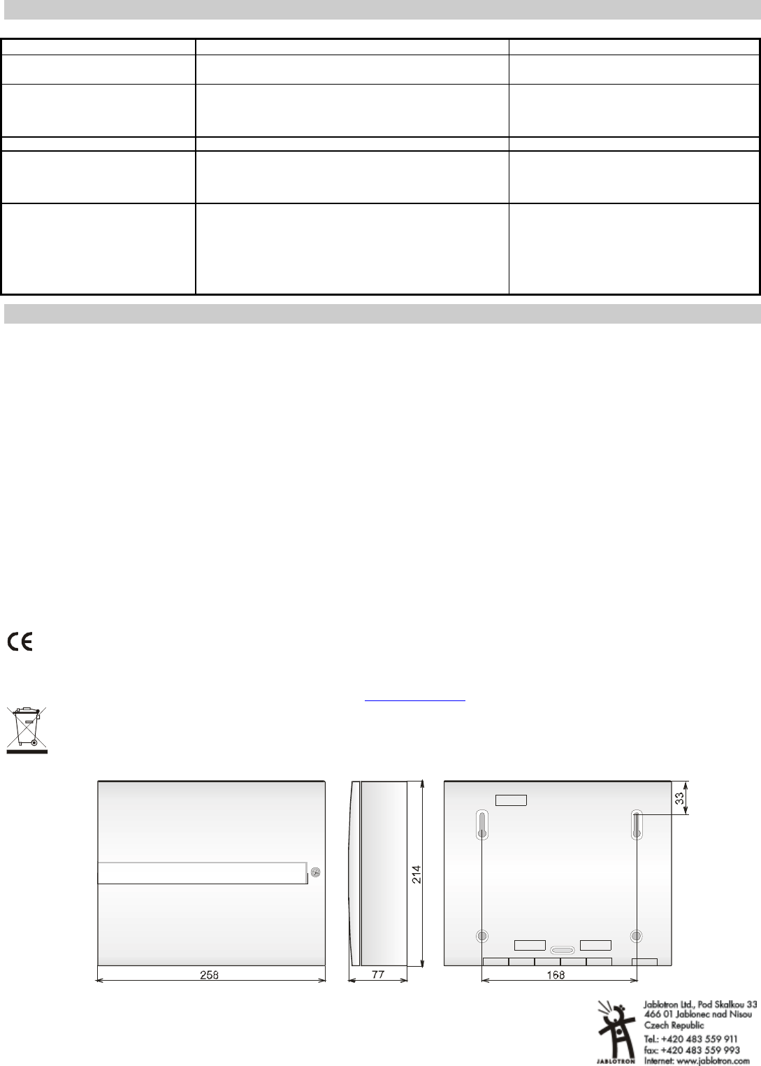 CAUTION: Changes or modifications no expressly approved by Jablotron could void the user´s authority to operate the equipment.