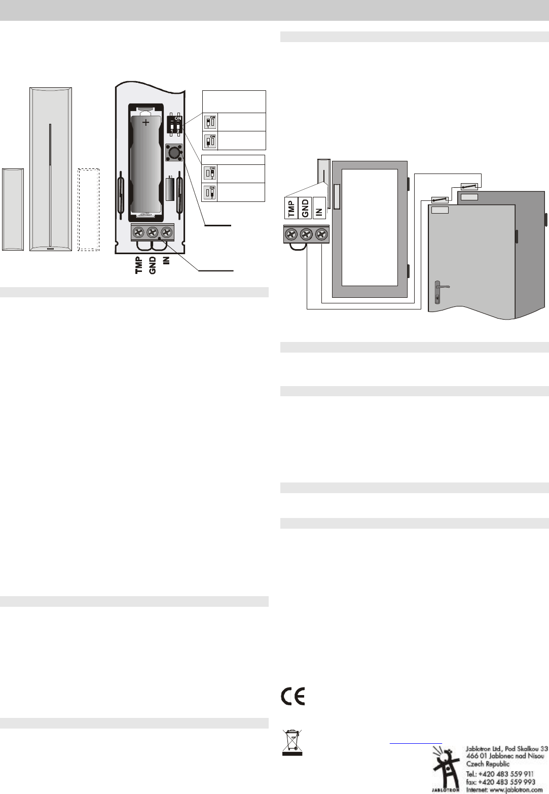 Jablotron JA80M Wireless magnetic door detector User Manual mhq51404