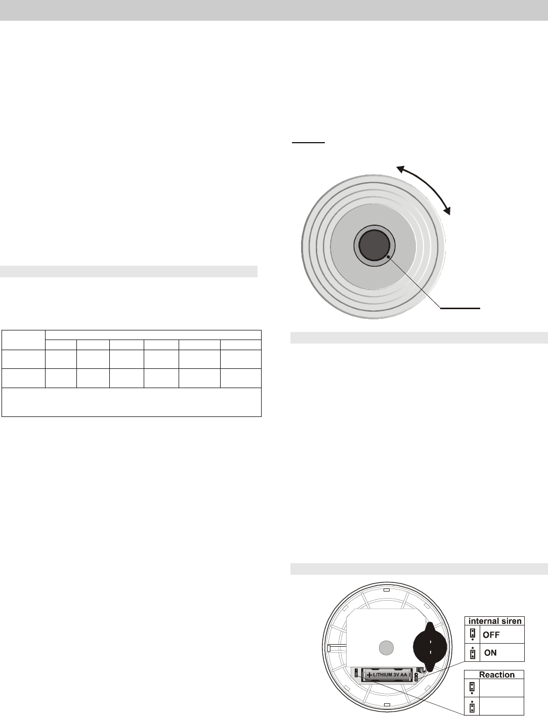 During a fire alarm, the detector LED flashes (if the fire reaction is set)