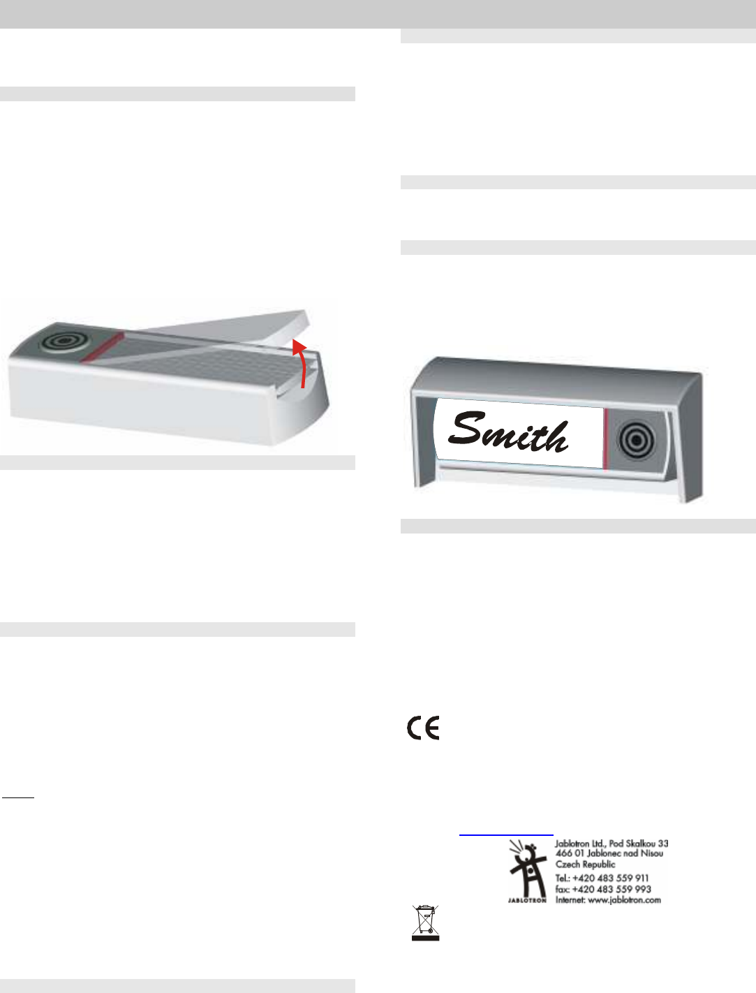 Jablotron Ltd Wireless doorbell button Exhibit 7 Instruction manual RC89