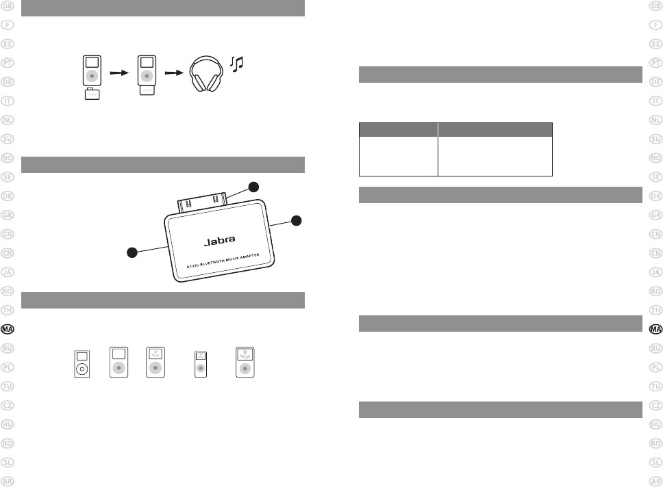 such as the Jabra BT620s. The adapter connects with most iPods, iPod minis