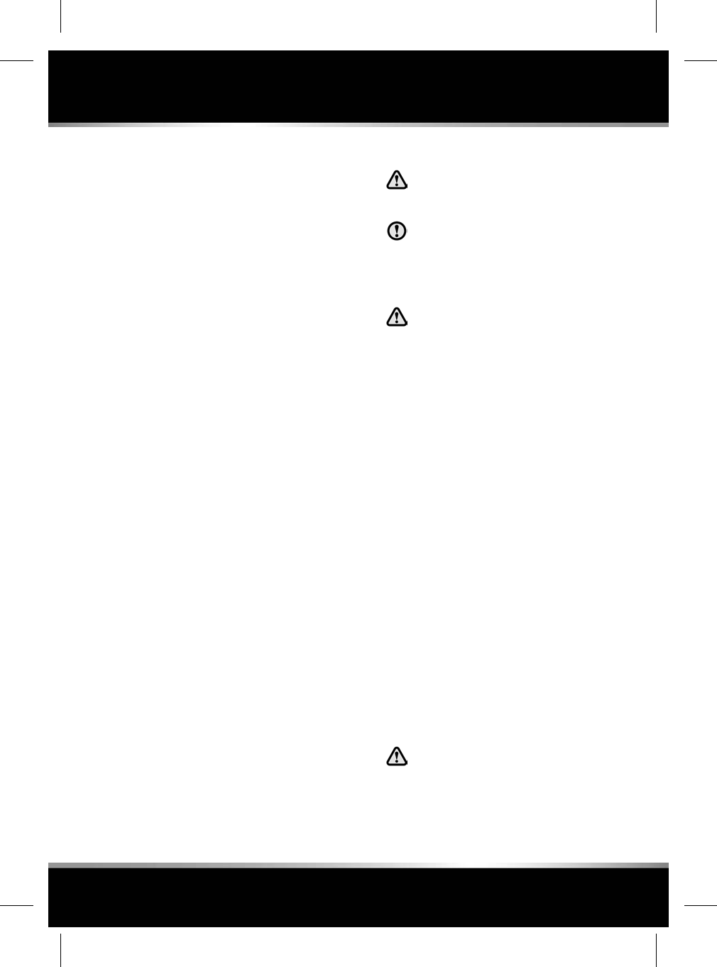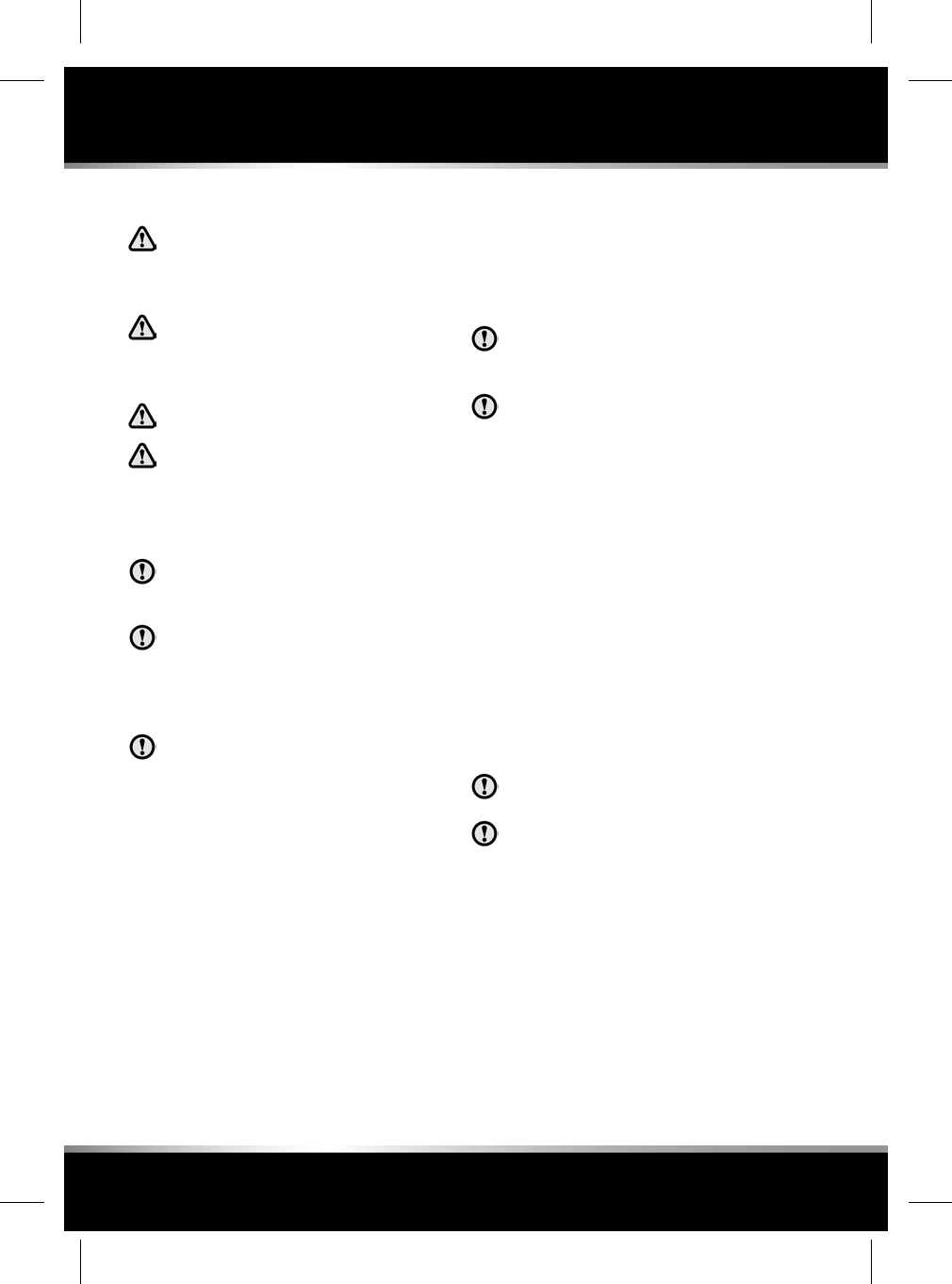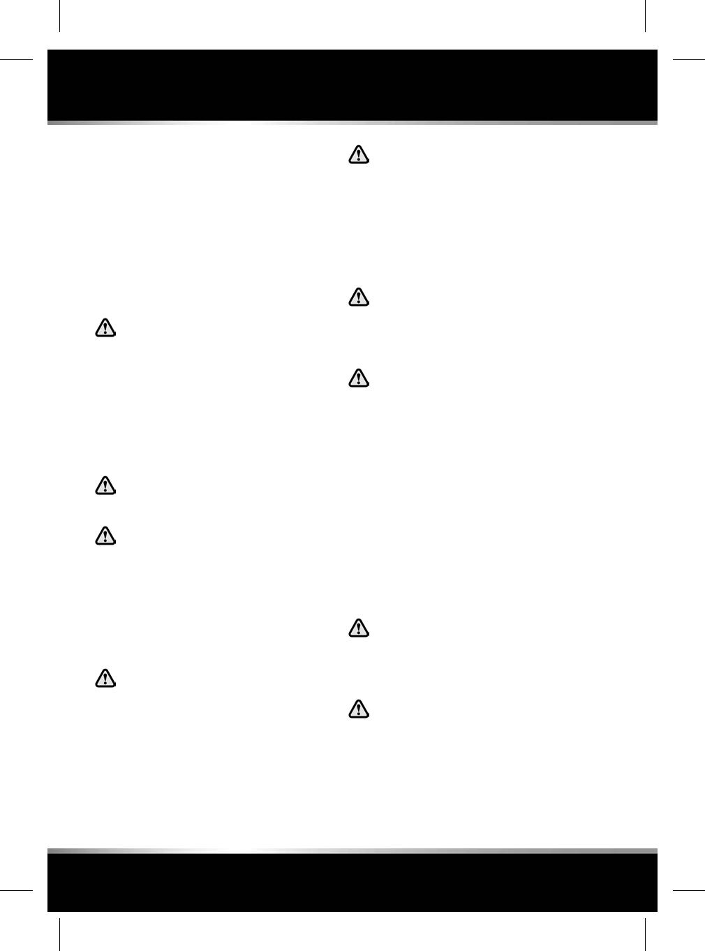 Safety warnings indicate either a procedure which must be followed precisely, or