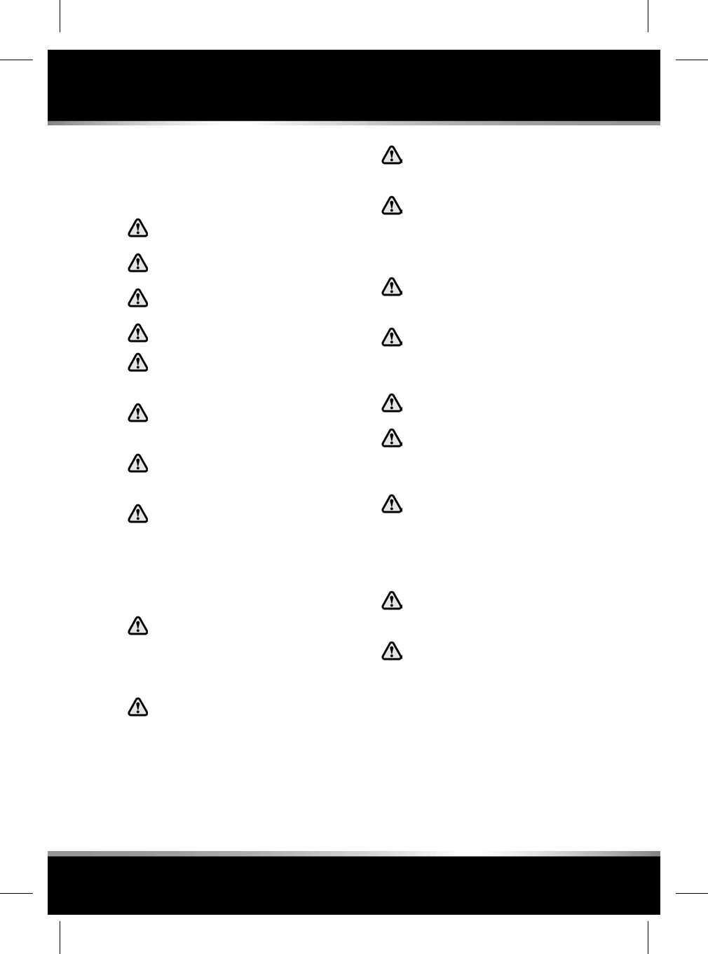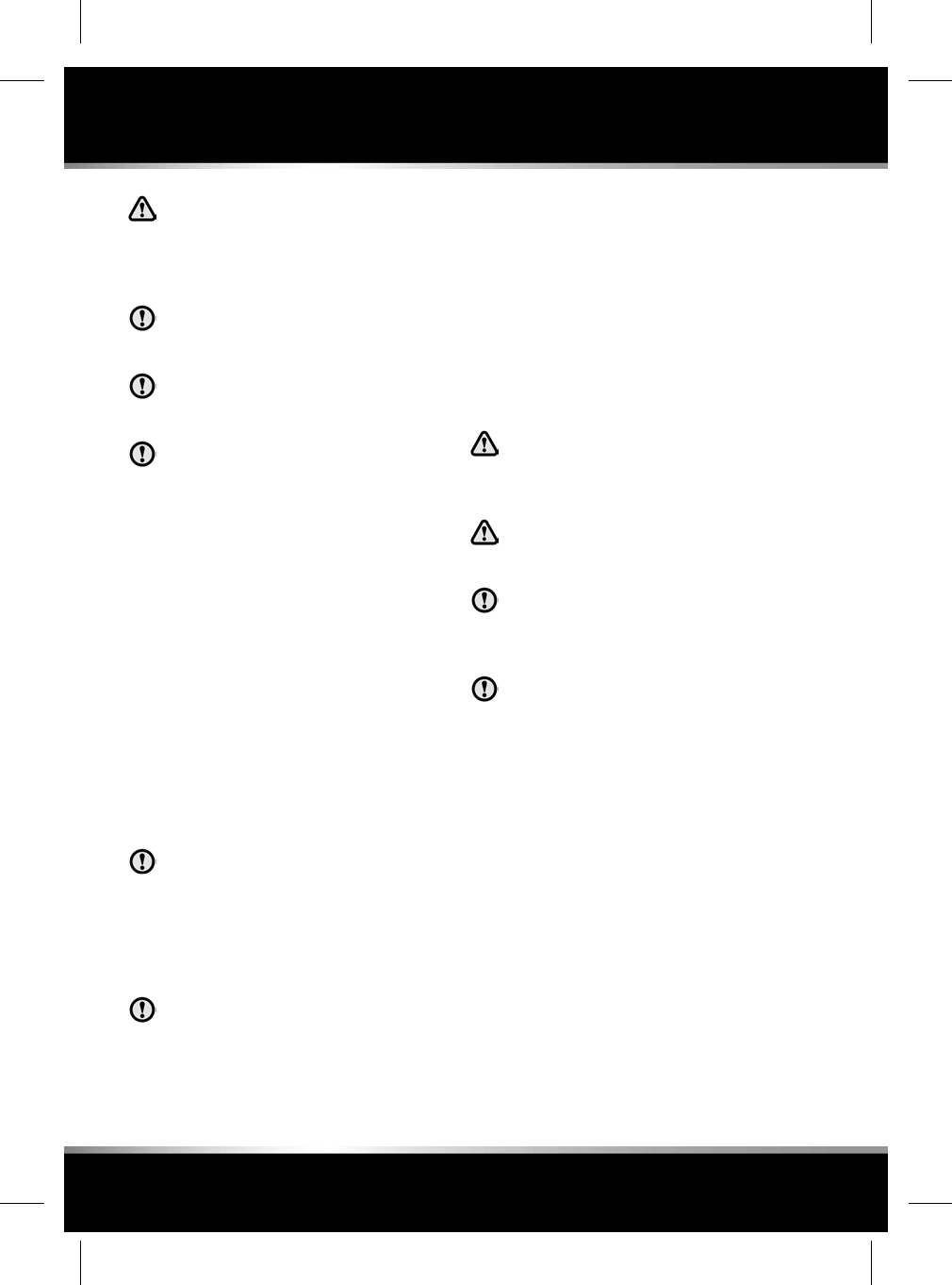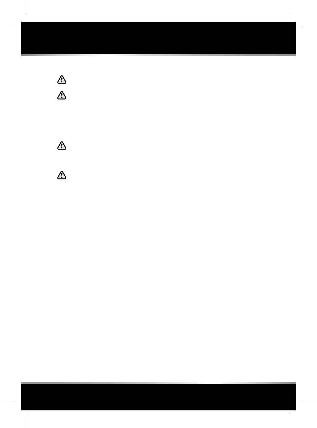 Safety warnings indicate either a procedure which must be followed precisely, or