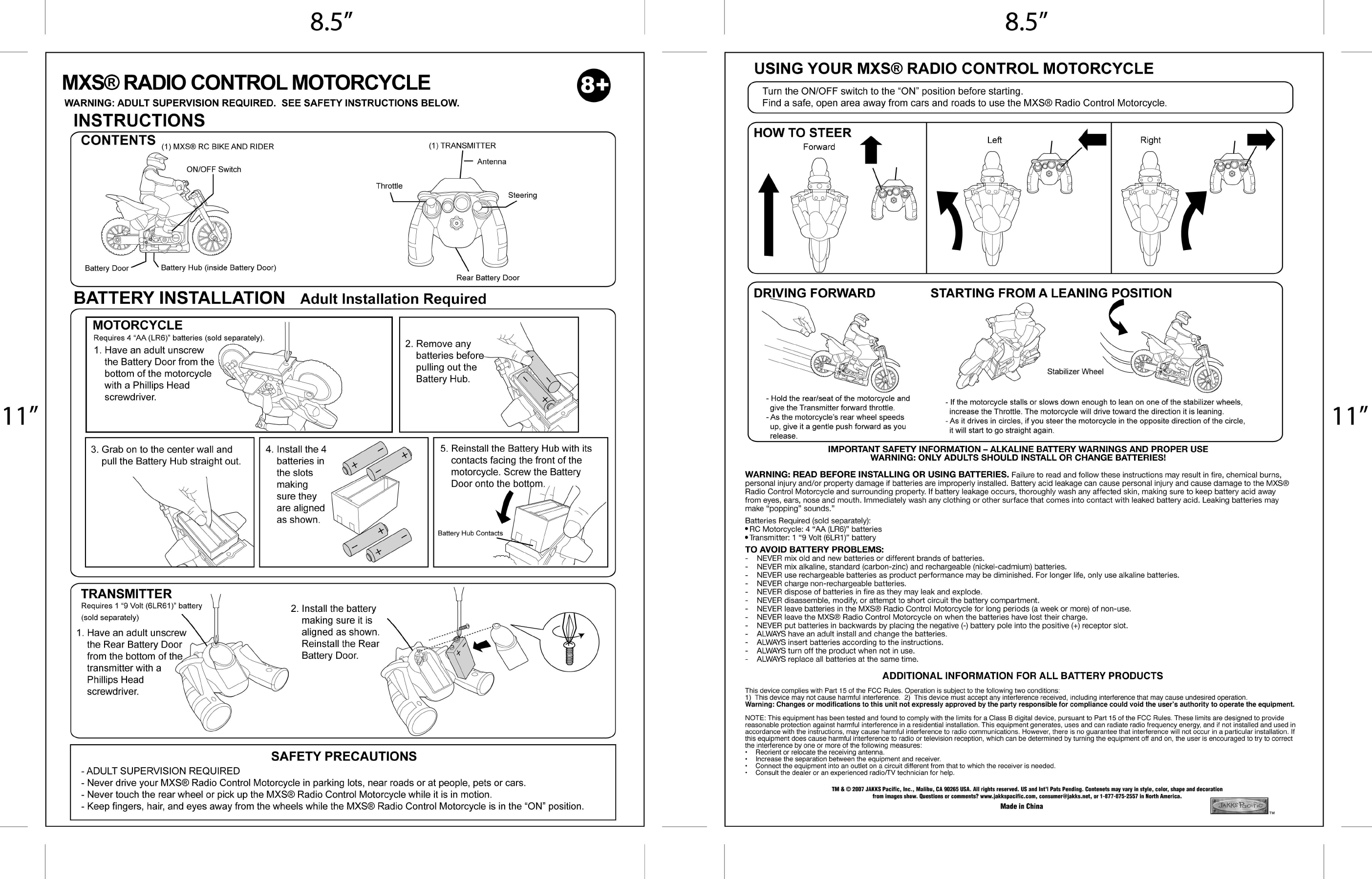 Jakks Pacific (HK) Ltd. MXS RC MOTORCYCLE USERS MANUAL