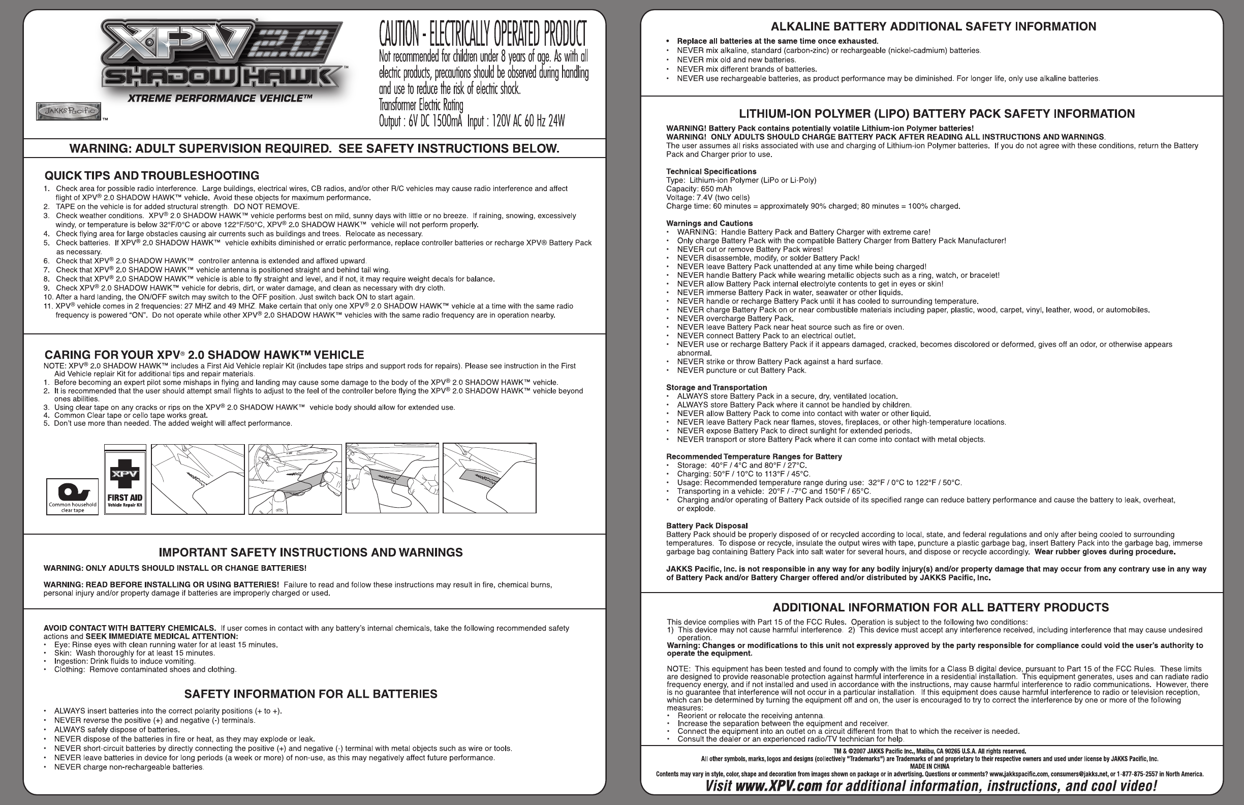 Jakks Pacific RC74123T49 Shadow Hawk User Manual XPVback page