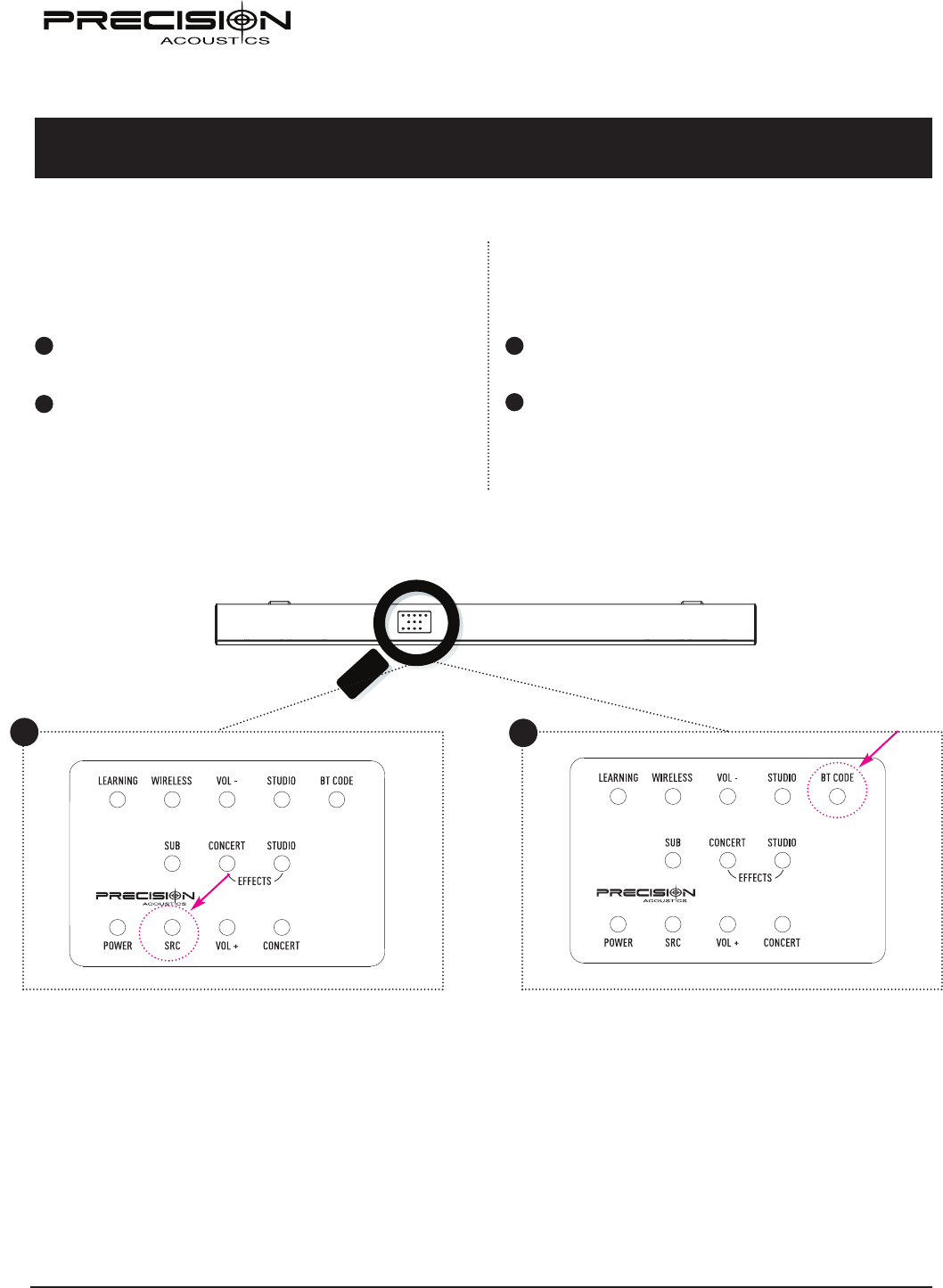 Appuyez sur la touche BT CODE, la DEL clignotera rapidement.