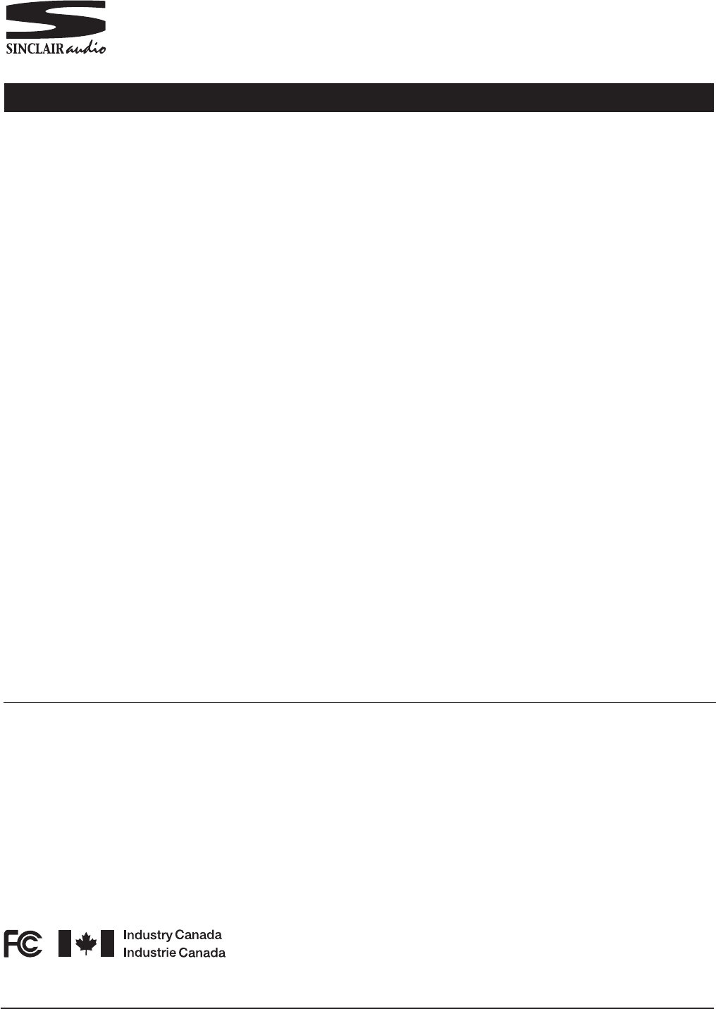 Audio. Sinclair Audio offre une garantie d’une (1) année sur les