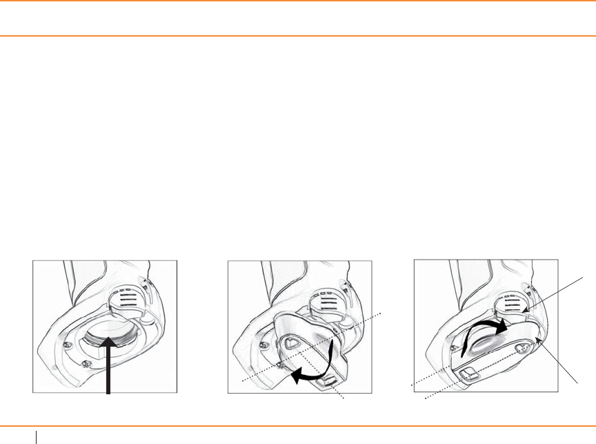 4. Rotate the battery base clockwise until the base of the battery is parallel with the device. The battery release plunger