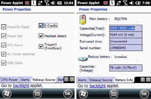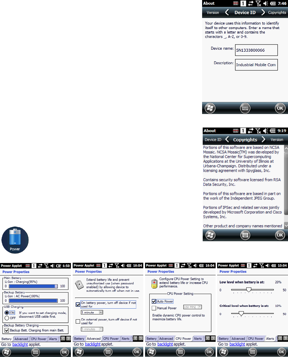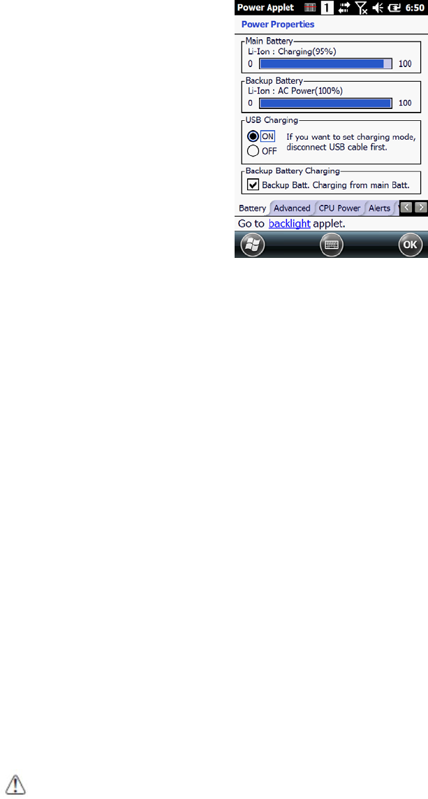 battery pack, and launches ActiveSync (see ActiveSync Communication on paragraph 10.4).