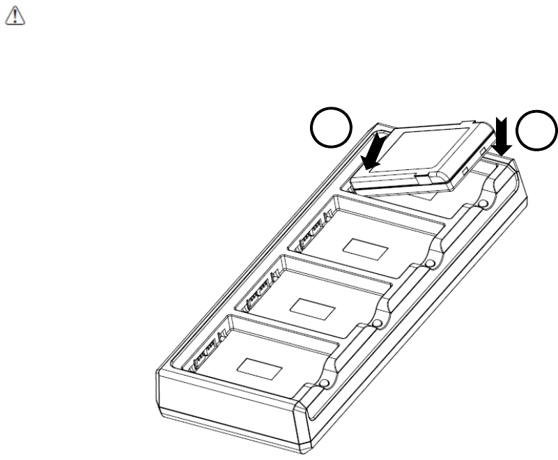 The charger contains four charging slots. Each slot holds one battery. When a battery is placed