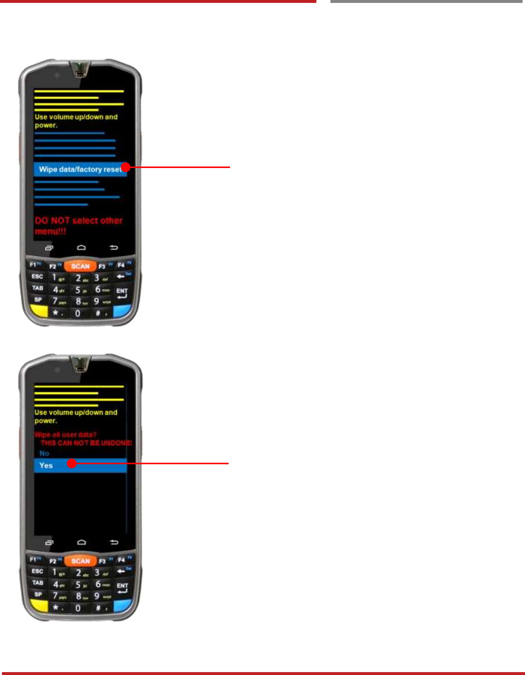 Select “Yes” to perform the “Factory data reset”