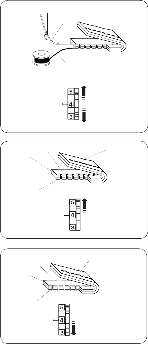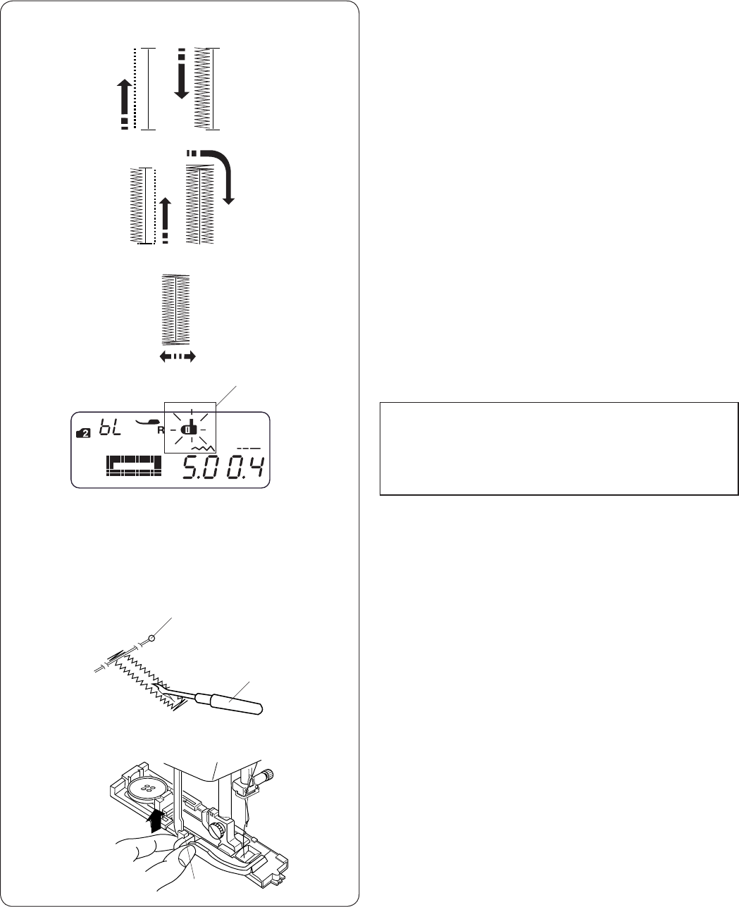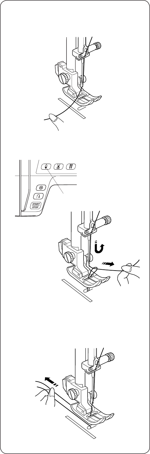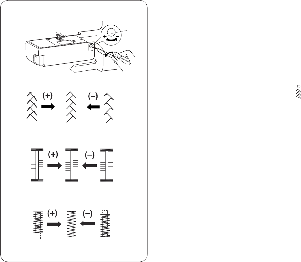 13. Do not pull or push fabric while stitching. It may deect the needle causing it to break.