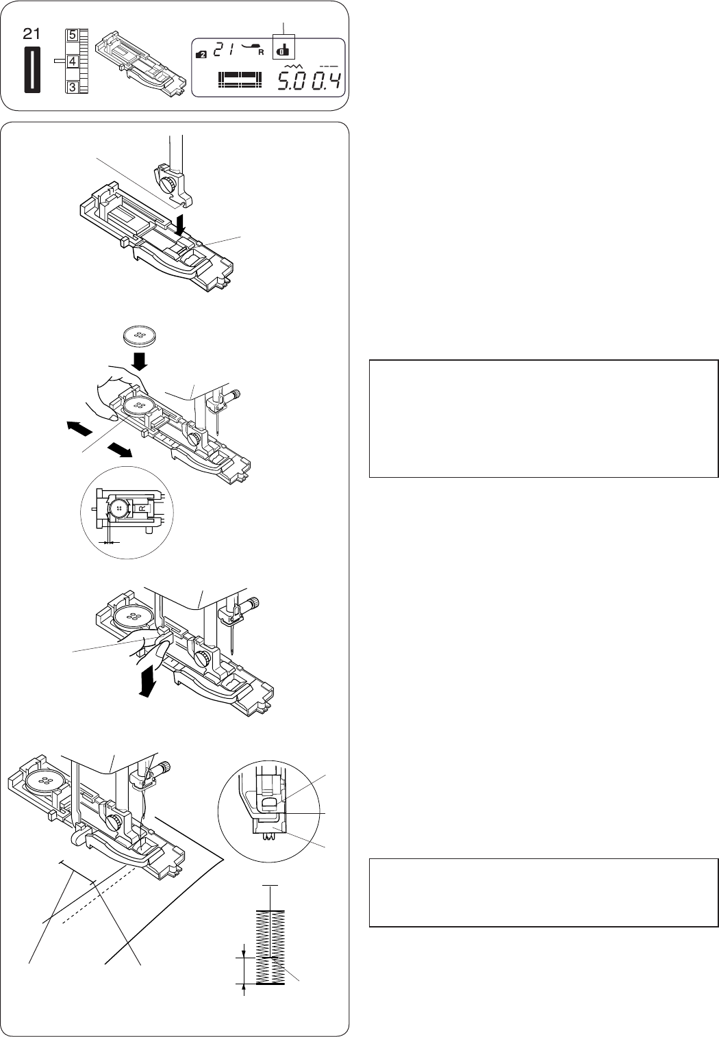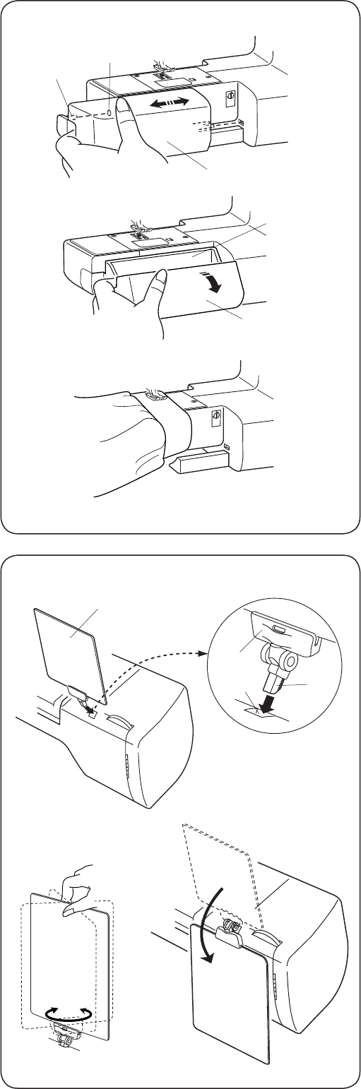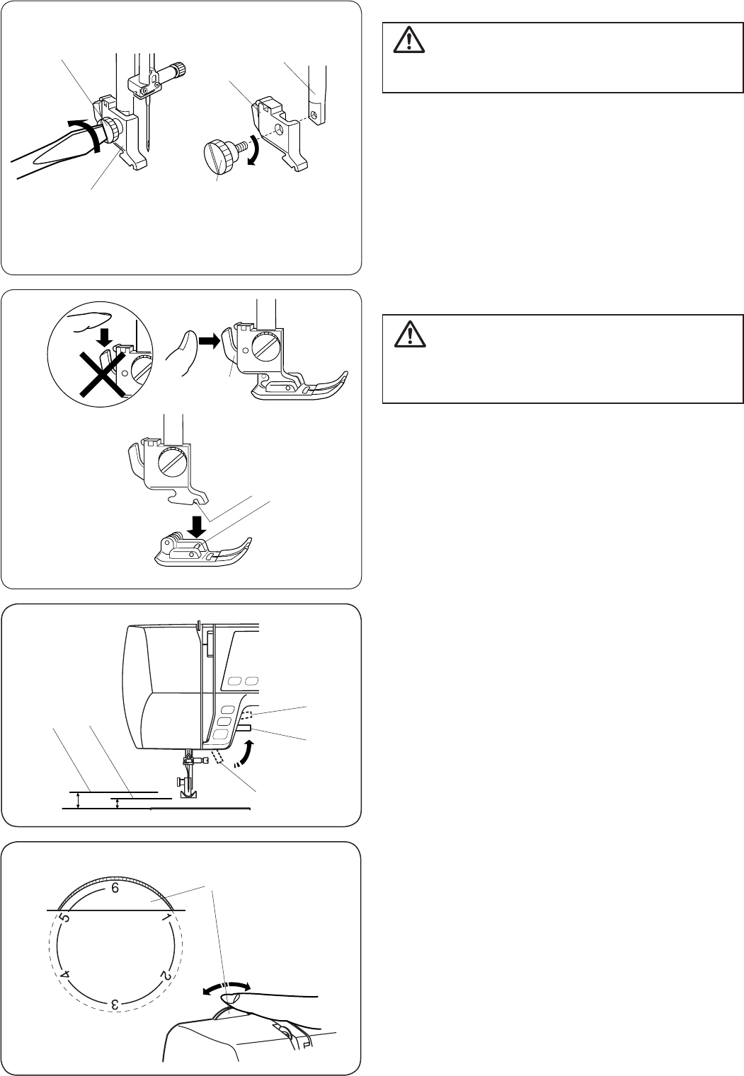 13. Do not pull or push fabric while stitching. It may deect the needle causing it to break.