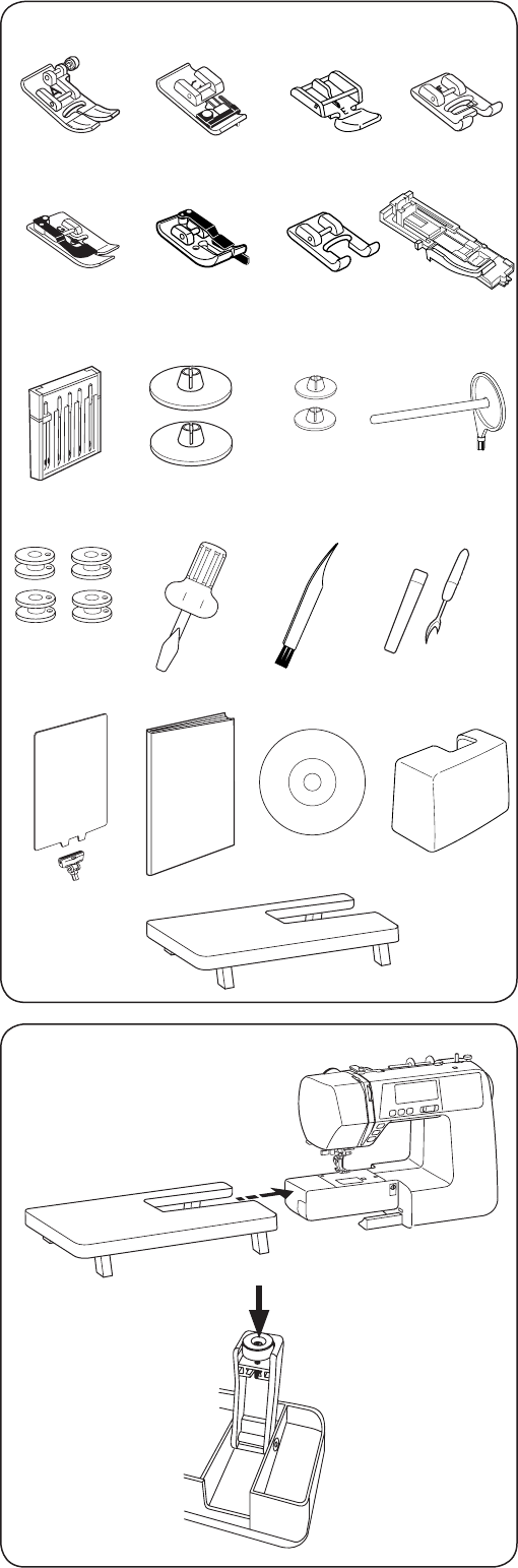 needle, changing the needle, threading the bobbin or changing the presser foot, and the like.