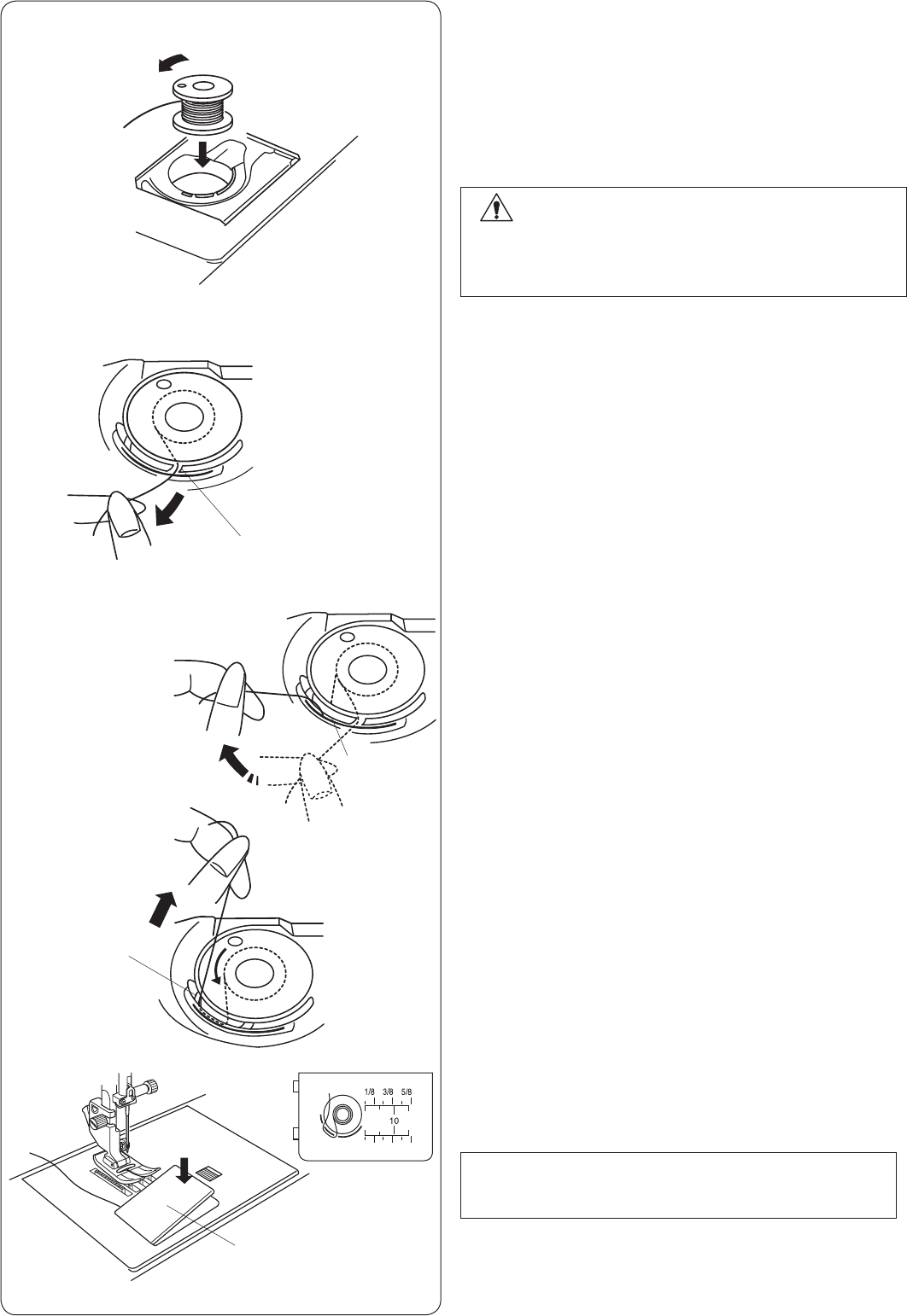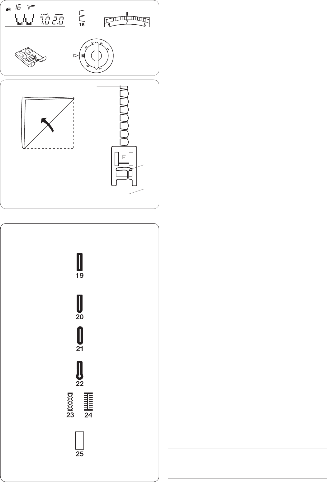 13. Do not pull or push fabric while stitching. It may deflect the needle causing it to break.