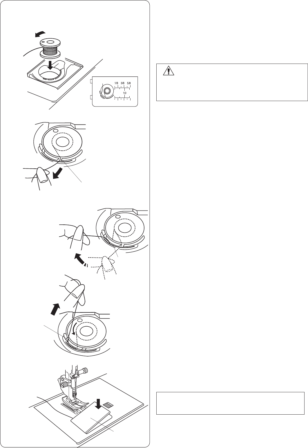 13. Do not pull or push fabric while stitching. It may deflect the needle causing it to break.