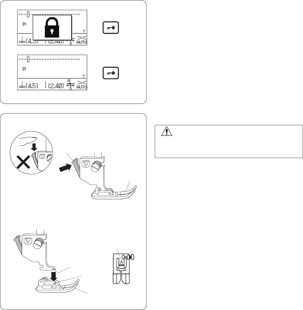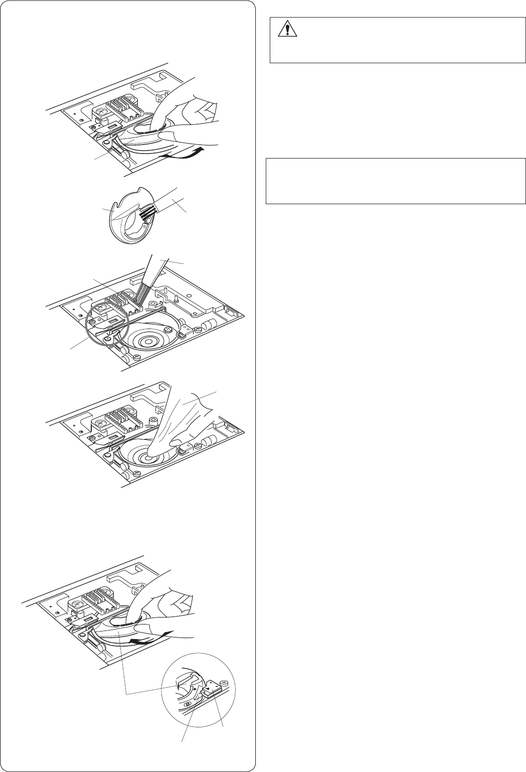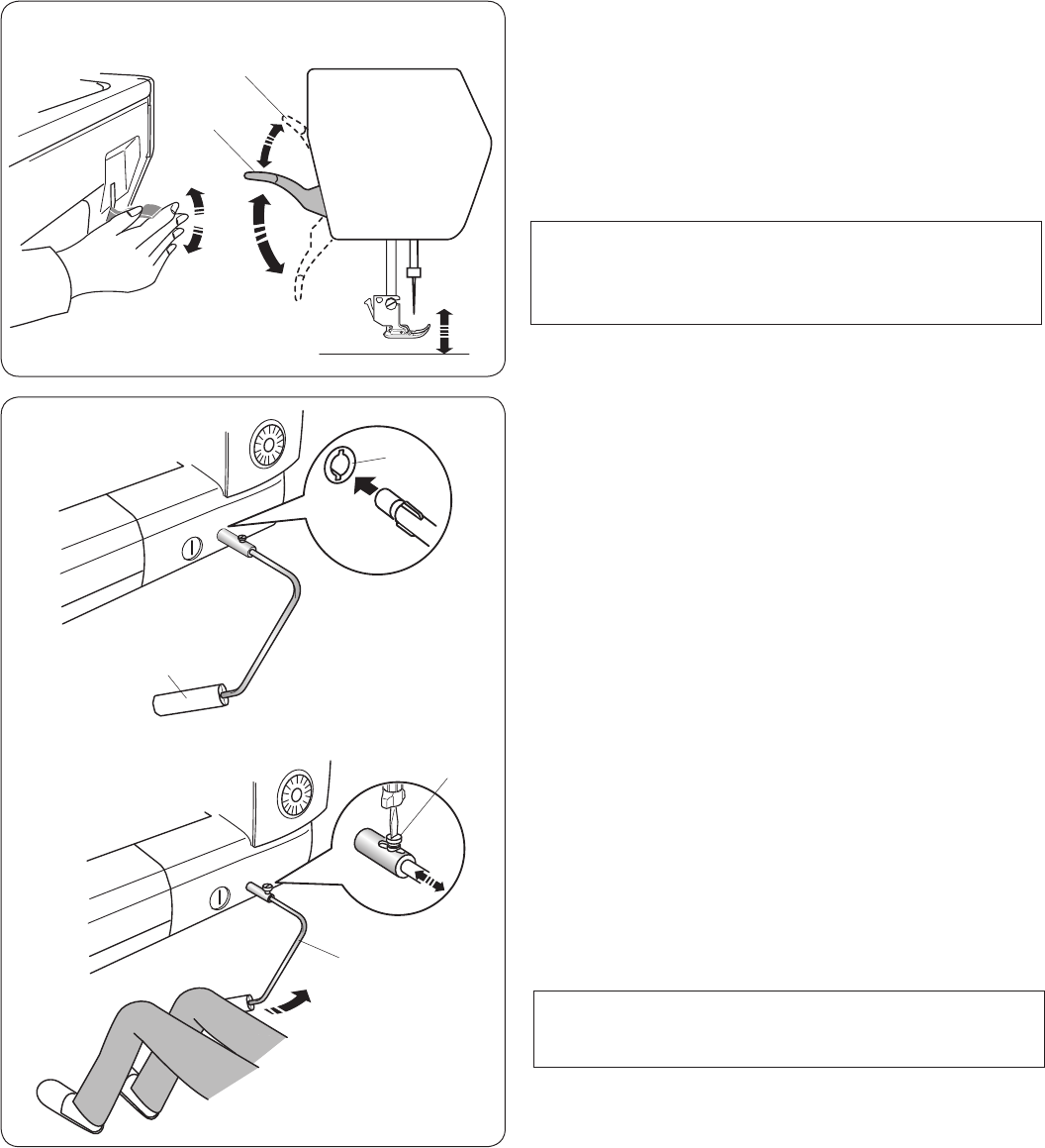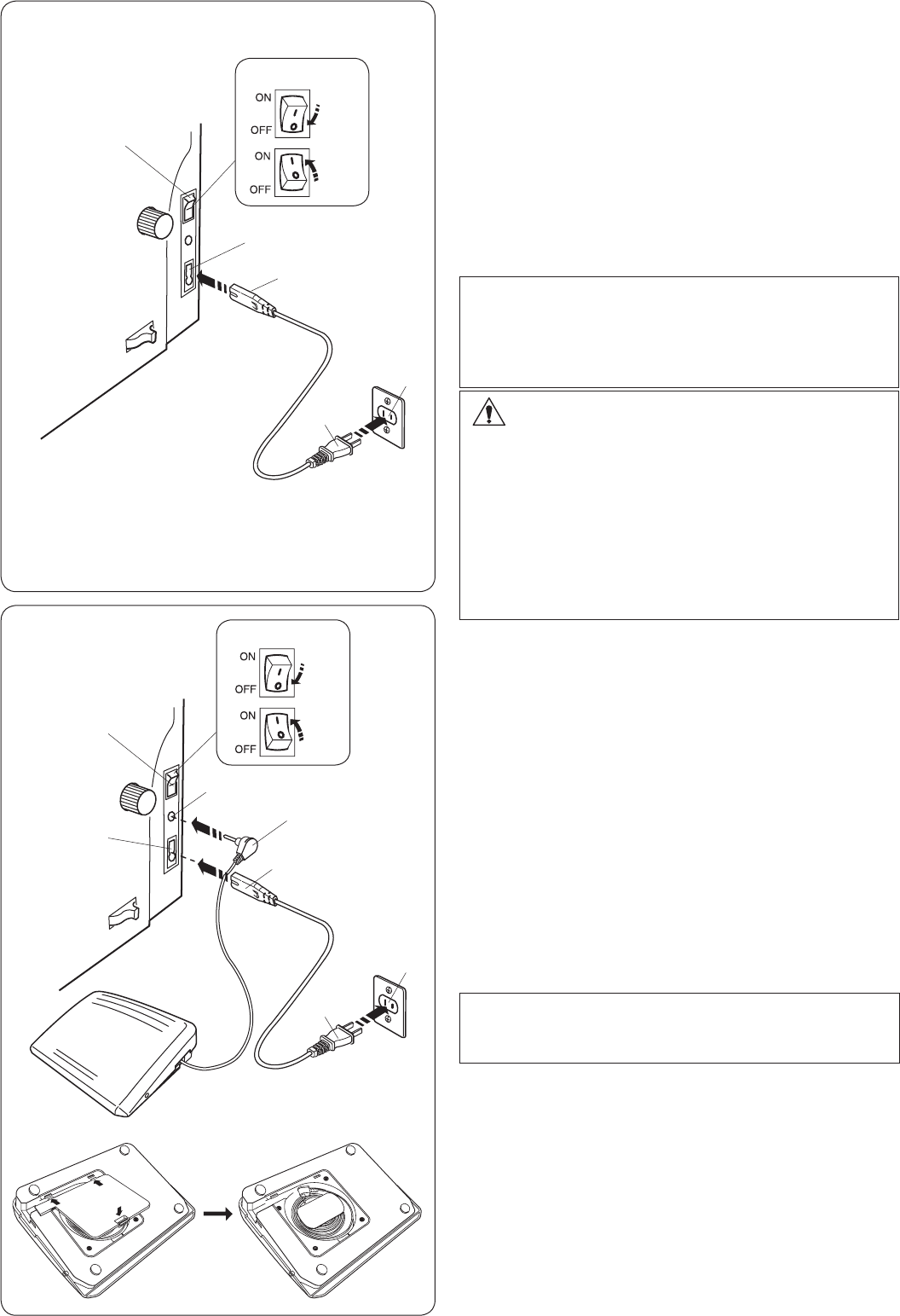 14. Switch this sewing machine off (“O”) when making any adjustment in the needle area, such as threading the